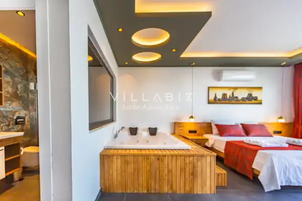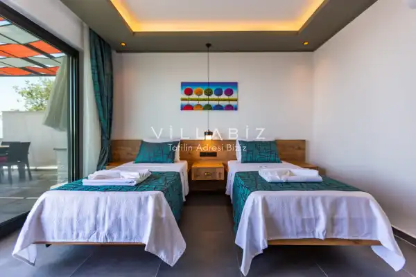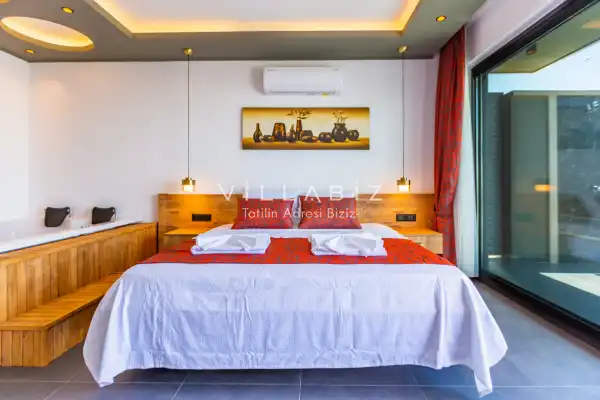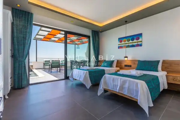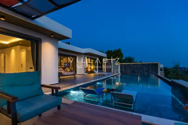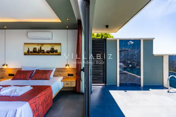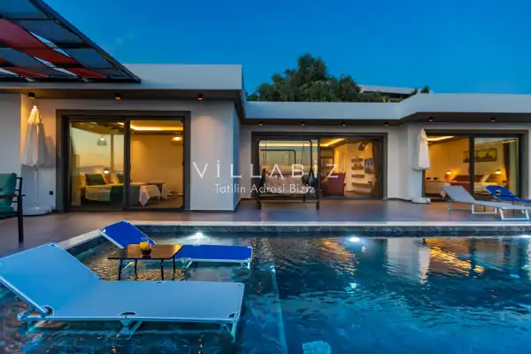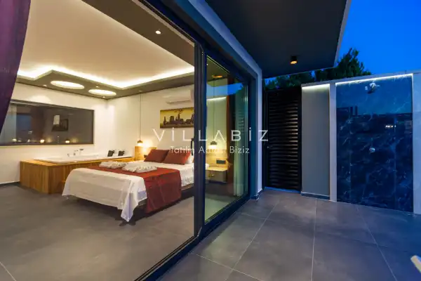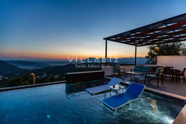 Villamız Antalya'nın en sakin ve Akdeniz koylarının masmavi büyüleyiciliğine sahip bölgesi Kalkan'ın Üzümlü mevkiinde yer almaktadır. Etrafını saran çam ve sedir ormanlarının, kusursuz maki iklimiyle birleştiği; sonunun hep sonsuz maviliklere eriştiği konumuyla kusursuz bir tatil isteyen balayı çiftlerimizin her anını özel ve unutulmaz kılmaktadır. Patara plajı, Kaputaş Plajı, Saklıkent Kanyonu, Gizlikent Şelalesi gibi turistik alanlara yakınlığıyla da trafiğe takılmadan etrafı keşfedecekleri bir tatil imkanı sunmaktadır.
