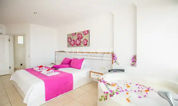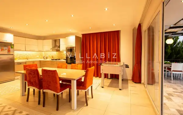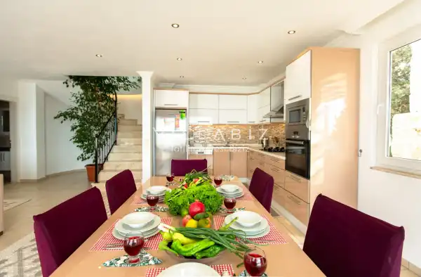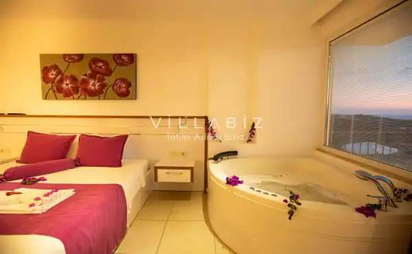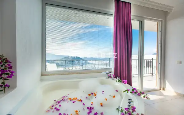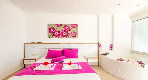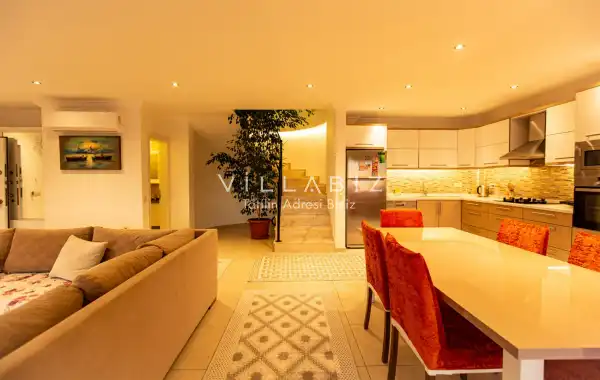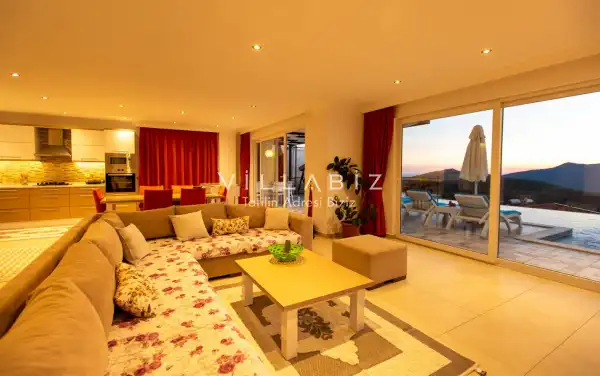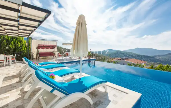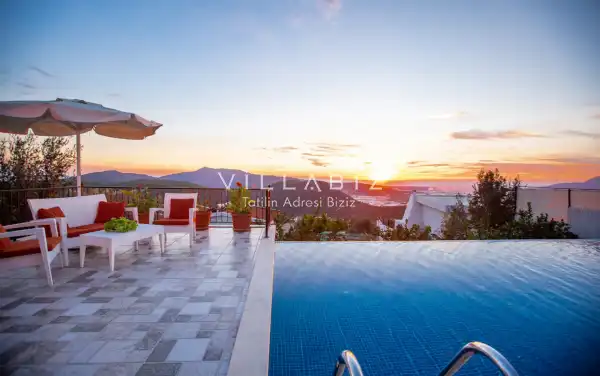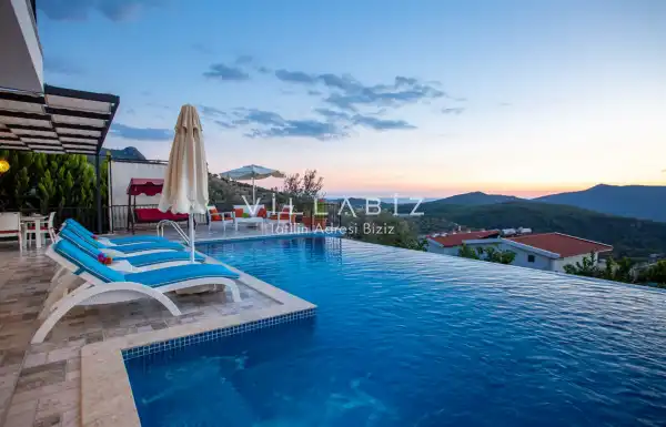 Villamız Antalya'nın en sakin ve Akdeniz koylarının masmavi büyüleyiciliğine sahip bölgesi Kalkan'ın Üzümlü mevkiinde yer almaktadır. Etrafını saran çam ve sedir ormanlarının, kusursuz maki iklimiyle birleştiği; sonunun hep sonsuz maviliklere eriştiği konumuyla kusursuz bir tatil isteyen balayı çiftlerimizin her anını özel ve unutulmaz kılmaktadır. Patara plajı, Kaputaş Plajı, Saklıkent Kanyonu, Gizlikent Şelalesi gibi turistik alanlara yakınlığıyla da trafiğe takılmadan etrafı keşfedecekleri bir tatil imkanı sunmaktadır.