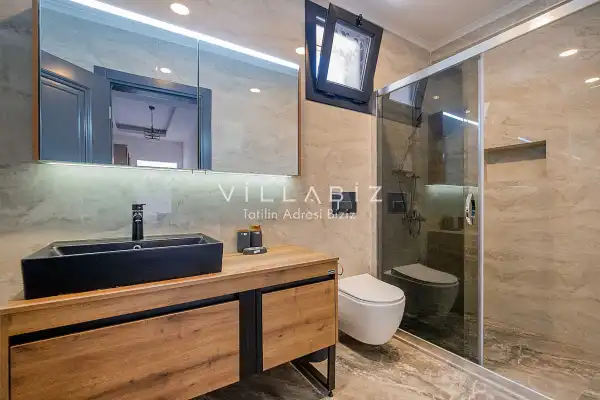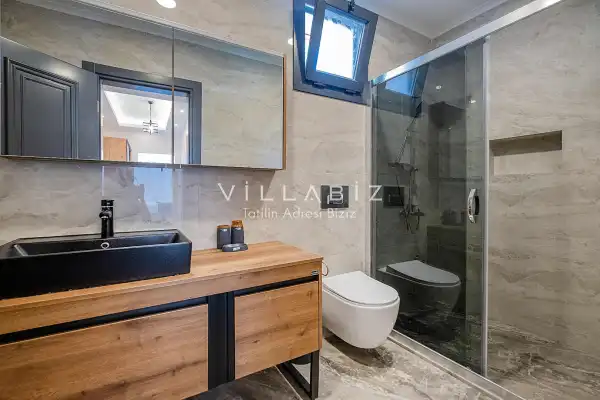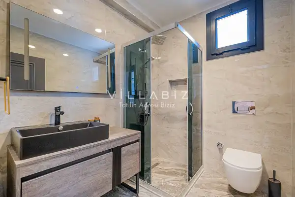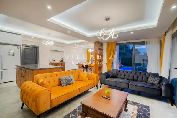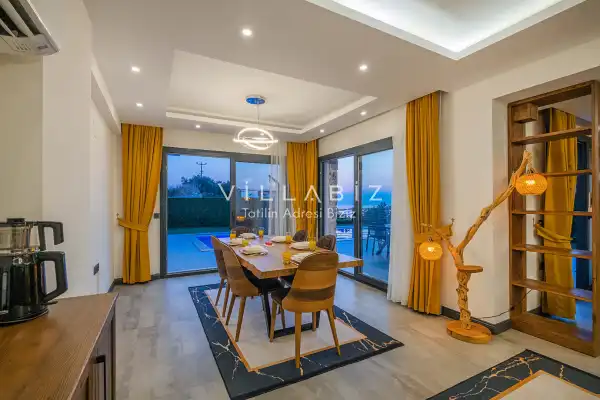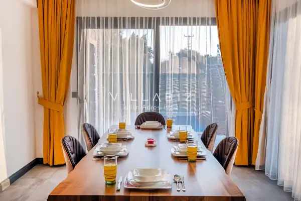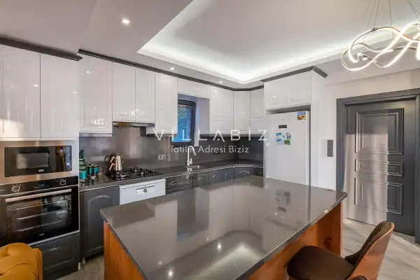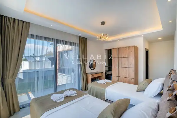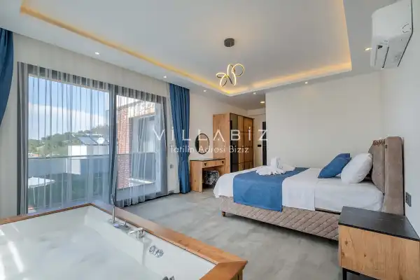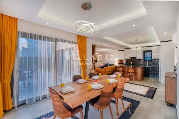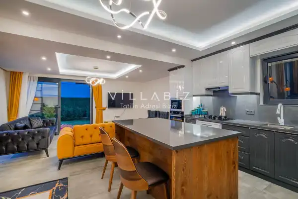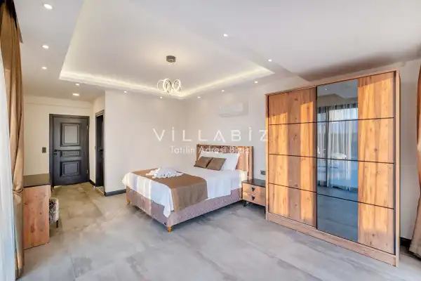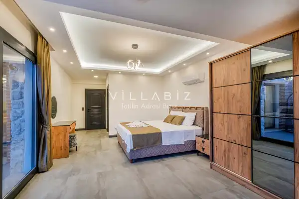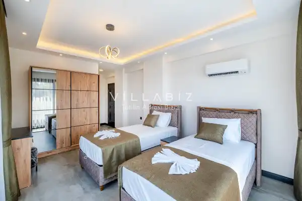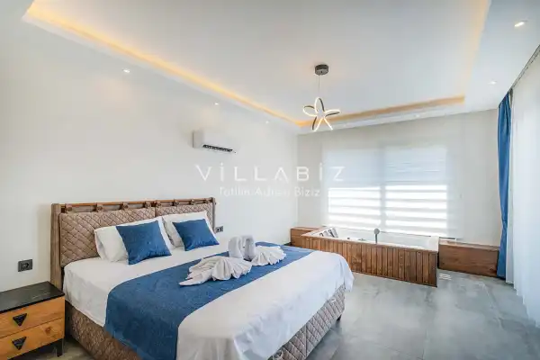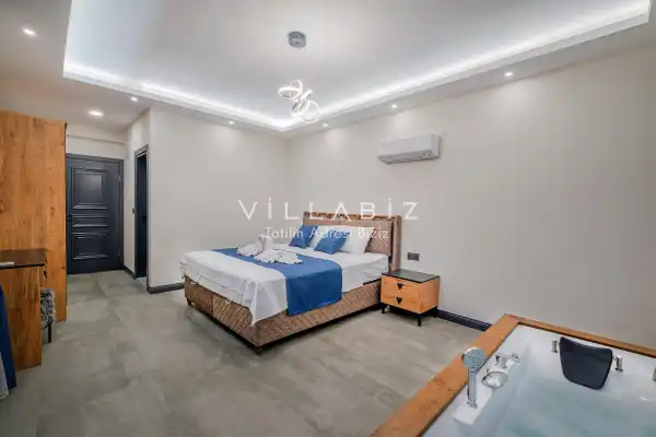 Toplam 4 yatak odasından oluşmuş, 8 kişi konaklama kapasitesine sahiptir. Geniş aileler ve kalabalık arkadaş grupları için oldukça idealdir. Oldukça şık ve modern bir şekilde döşenmiş olan villamızda misafirlerimiz için herşey düşünülmüştür. Havuz terasında bulunan şezlonglarda güneşlenebilir, bahçe masasında muhteşem yemekler yiyebilir, salıncakta sallanıp keyifli dakikalar geçirebilirsiniz.