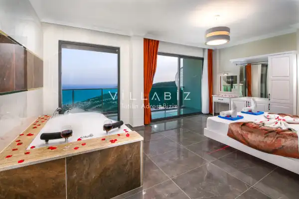 Muhteşem bir deniz manzarasına sahip olan villamız havuz terasının korunaklı yapısından dolayı ve balayı çiftleri için oldukça idealdir. Sevdiklerinizle birlikte günbatımına karşı içeceklerinizi yudumlayıp manzaranın tadını çıkarabilirsiniz. Villamızda bulunan jakuzi ise rahatlayıp tüm yılın yorgunluğunu üzerinizden atmanıza yardımcı olacaktır.