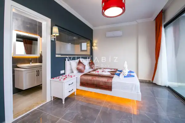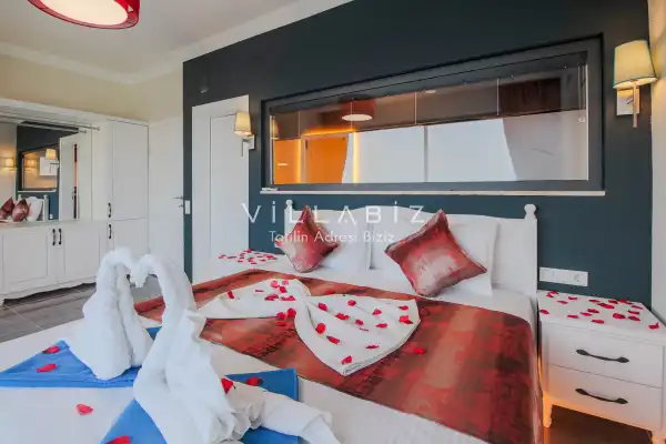Toplam 2 yatak odasından oluşmuş, 4 kişi konaklama kapasitesine sahiptir. Geniş aileler ve kalabalık arkadaş grupları için oldukça idealdir. Oldukça şık ve modern bir şekilde döşenmiş olan villamızda misafirlerimiz için her şey düşünülmüştür. Havuz terasında bulunan şezlonglarda güneşlenebilir, bahçe masasında muhteşem yemekler yiyebilir, salıncakta sallanıp keyifli dakikalar geçirebilirsiniz