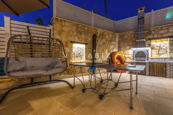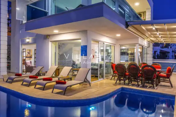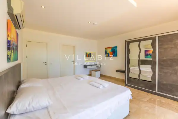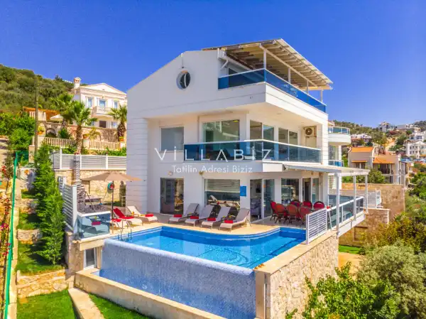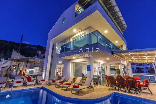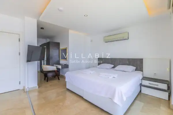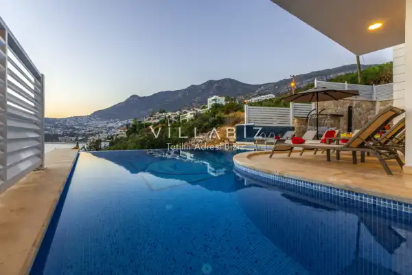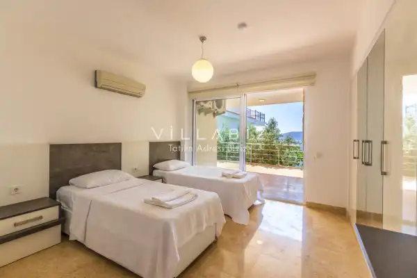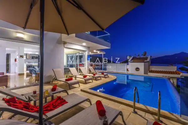 Kalkan Kışla Bölgesi'nde yer alan muhteşem deniz manzarasına sahip villamız, Villa Everest 8 kişilik kapasiteye sahip villada 4 yatak odası yer alıyor. Villanın birer banyosu ve jakuzisi mevcut. Açık mutfağı ve kendine ait bahçesinde bir havuzu var. Mutfağında bulaşık makinesi, buzdolabı, ankastre fırın, tost makinesi ve mutfakta ihtiyaç olan hemen hemen bütün gereçler bulunuyor. Barbekü, masa, sandalyeler, şezlonglar ve şemsiyeler bahçe keyfini sınırsız yaşamanıza imkan tanıyor. Salonunda oturma grubu, televizyon, eşyalar bulunurken, tüm odalar için ayrı klima imkanı var.Villa Everest 8 kişilik kapasiteye sahip villada 4 yatak odası yer alıyor. Villanın birer banyosu ve jakuzisi mevcut. Açık mutfağı ve kendine ait bahçesinde bir havuzu var. Mutfağında bulaşık makinesi, buzdolabı, ankastre fırın, tost makinesi ve mutfakta ihtiyaç olan hemen hemen bütün gereçler bulunuyor. Barbekü, masa, sandalyeler, şezlonglar ve şemsiyeler bahçe keyfini sınırsız yaşamanıza imkan tanıyor. Salonunda oturma grubu, televizyon, eşyalar bulunurken, tüm odalar için ayrı klima imkanı var.