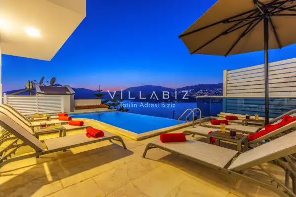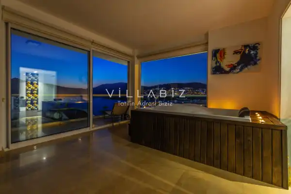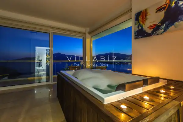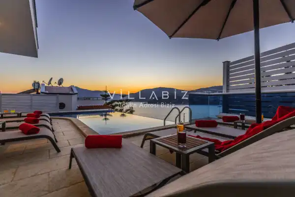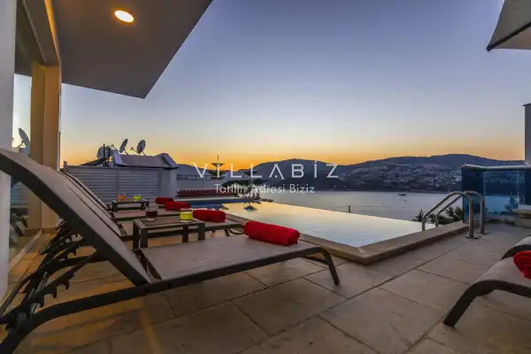Muhteşem bir deniz manzarasına sahip olan villamız havuz terasının korunaklı yapısından dolayı ve balayı çiftleri için oldukça idealdir. Sevdiklerinizle birlikte günbatımına karşı içeceklerinizi yudumlayıp manzaranın tadını çıkarabilirsiniz. Villamızda bulunan jakuzi ise rahatlayıp tüm yılın yorgunluğunu üzerinizden atmanıza yardımcı olacaktır.