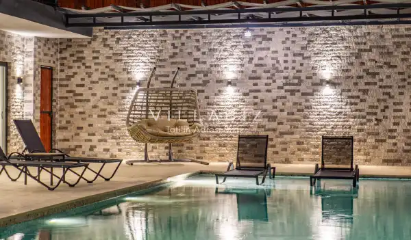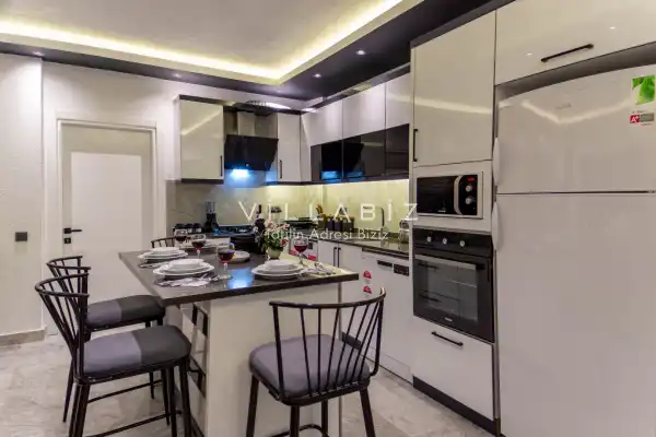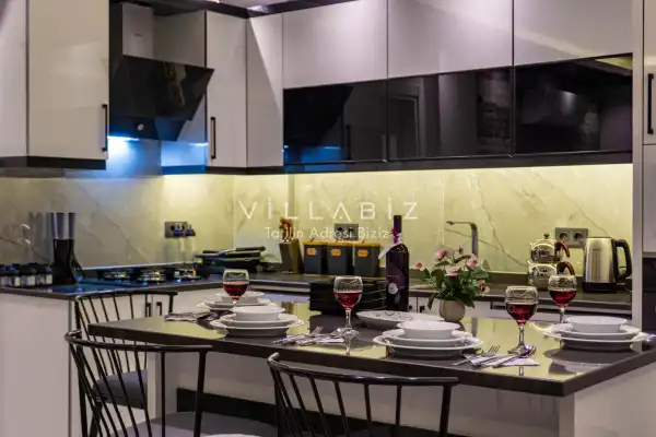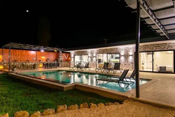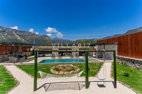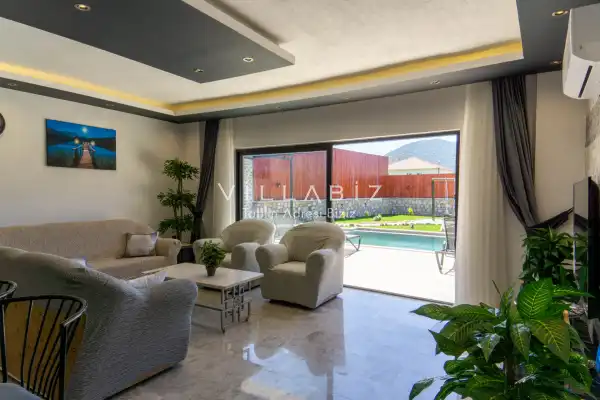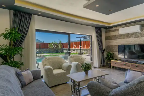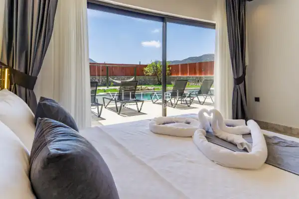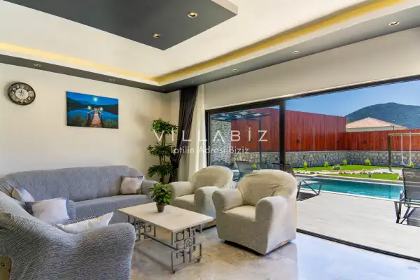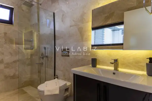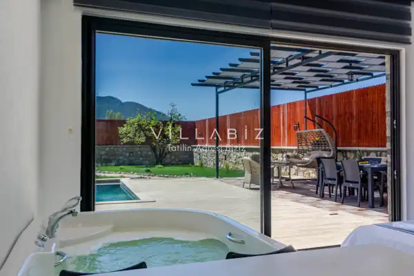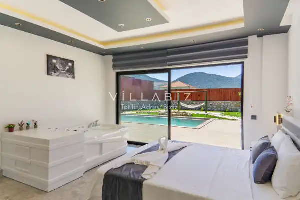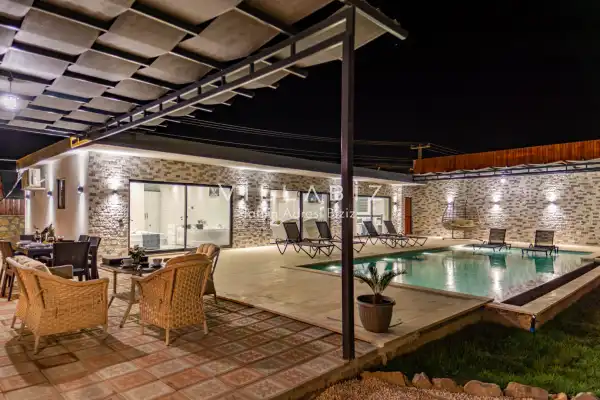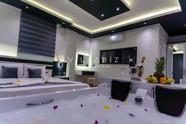 Toplam 2 yatak odasından oluşmuş, 5 kişi konaklama kapasitesine sahiptir. Geniş aileler ve kalabalık arkadaş grupları için oldukça idealdir. Oldukça şık ve modern bir şekilde döşenmiş olan villamızda misafirlerimiz için herşey düşünülmüştür. Havuz terasında bulunan şezlonglarda güneşlenebilir, bahçe masasında muhteşem yemekler yiyebilir, salıncakta sallanıp keyifli dakikalar geçirebilirsiniz.