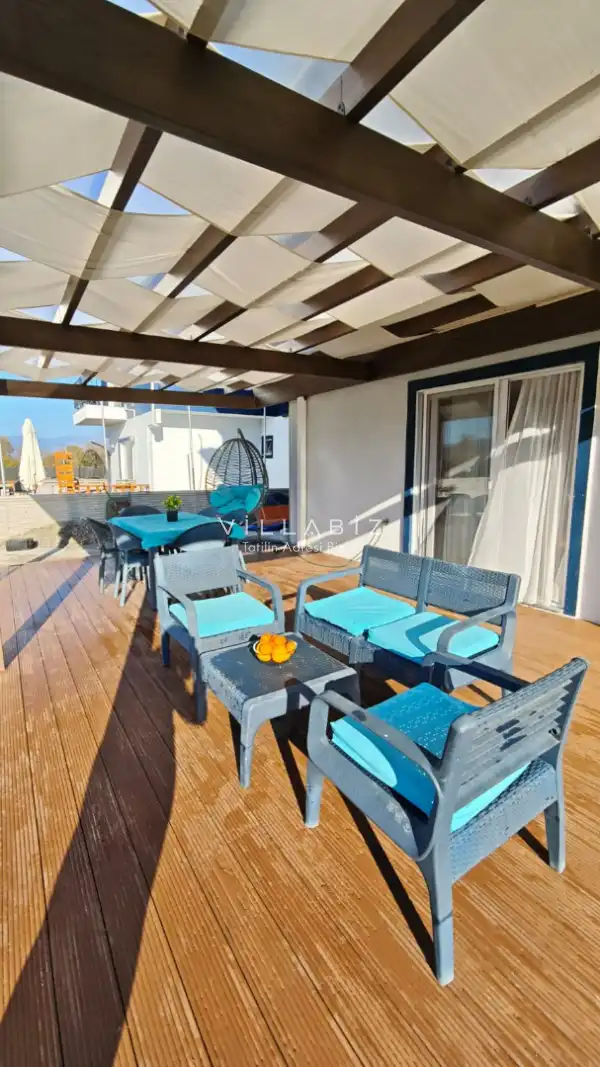 Toplam 4 yatak odasından oluşmuş, 8 kişi konaklama kapasitesine sahiptir. Geniş aileler ve kalabalık arkadaş grupları için oldukça idealdir. Oldukça şık ve modern bir şekilde döşenmiş olan villamızda misafirlerimiz için her şey düşünülmüştür. Havuz terasında bulunan şezlonglarda güneşlenebilir, bahçe masasında muhteşem yemekler yiyebilir, salıncakta sallanıp keyifli dakikalar geçirebilirsiniz.