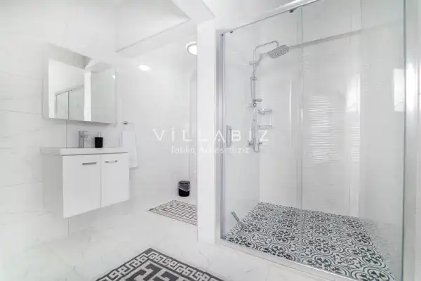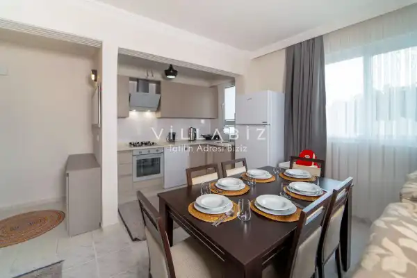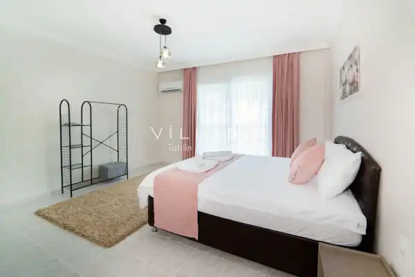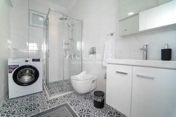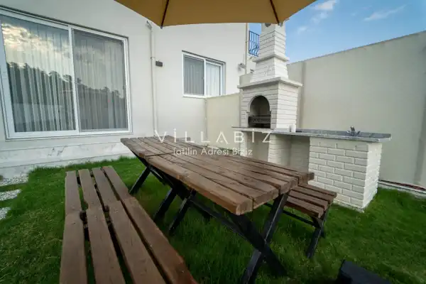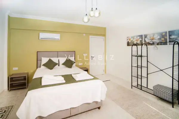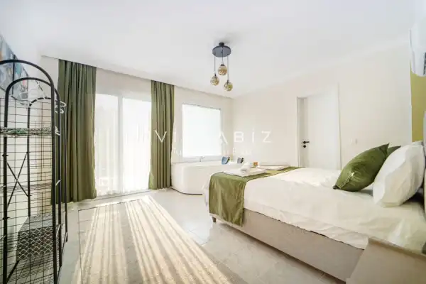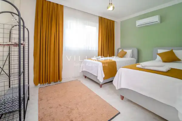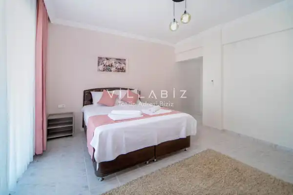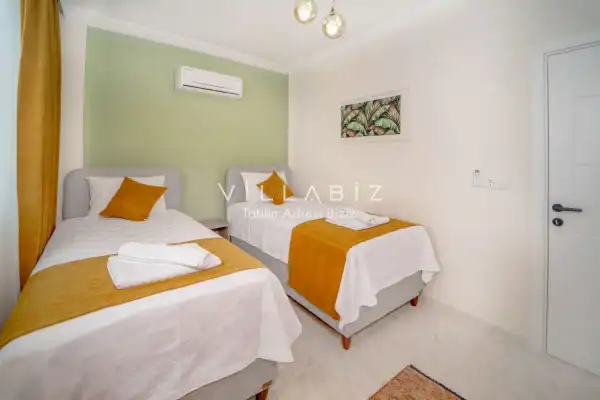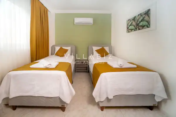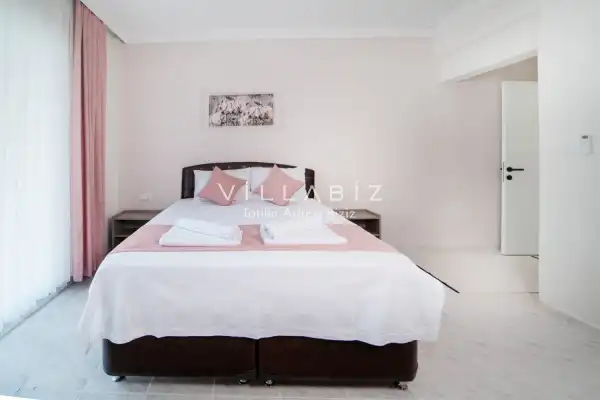 Toplam 3 yatak odasından oluşmuş, 6 kişi konaklama kapasitesine sahiptir. Geniş aileler ve kalabalık arkadaş grupları için oldukça idealdir. Oldukça şık ve modern bir şekilde döşenmiş olan villamızda misafirlerimiz için her şey düşünülmüştür. Havuz terasında bulunan şezlonglarda güneşlenebilir, bahçe masasında muhteşem yemekler yiyebilir, salıncakta sallanıp keyifli dakikalar geçirebilirsiniz.