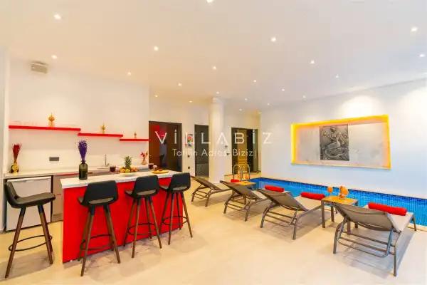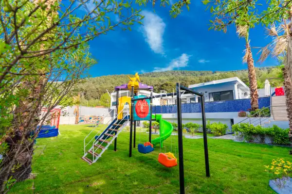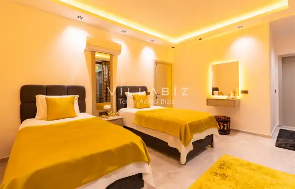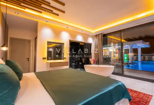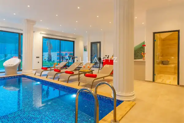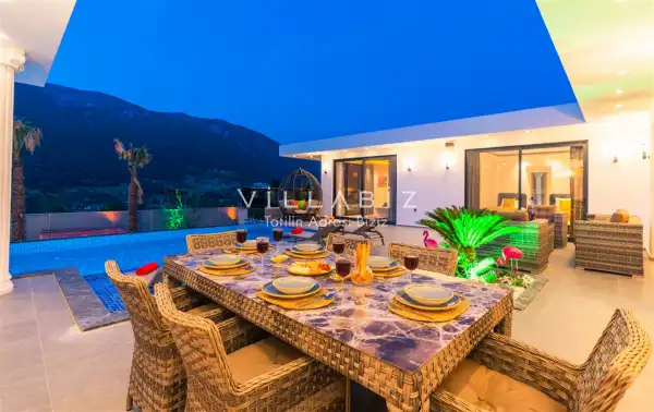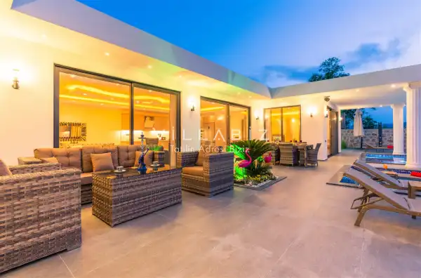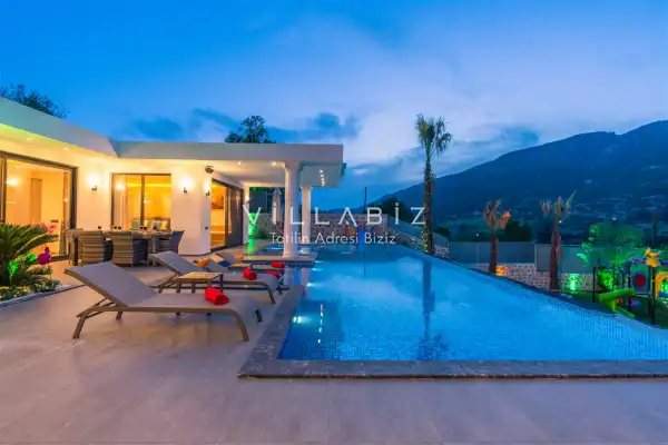 Kalkan/Hacıoğlan bölgesinde konumlanmıştır. Villamız Kalkan da lüks kiralık tatil villaları arasındadır. 6 kişilik kapasiteye sahip 3 yatak odalı özel havuzlu korunaklı lüks villalarımız arasındadır. Villamızda jakuzi, küvet, çoçuklar için oyun alanı(sandalye,masa, kitap,oyuncaklar), sinema odası, masa tenisi, langırt, playstation, küçük çoçuk parkı ( kaydırak ve salıncak), büyük çocuk parkı( kaydırak, salıncak, top havuzu, trambolin, tahterevalli, futbol kalesi, basketbol potası), havuz başında barbekü, nargile, oturma grubu, yemek masası, apple yatak bulunmaktadır. Villamızın büyük havuzunda çoçuk havuzu, jakuzisi ve şelalesi bulunmaktadır. Villamız 400 m² çim alana sahiptir. Kalkan şehir merkezine 15 dakikalık yol mesafesindedir. Villamızın havuzu korunaklı olup muhteşem bir doğa manzarasına sahiptir. Villamızın alt kısmında ise spa merkezi bulunmaktadır.