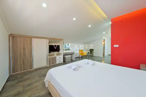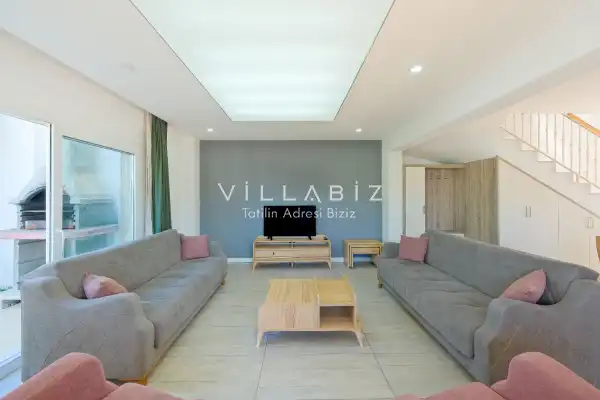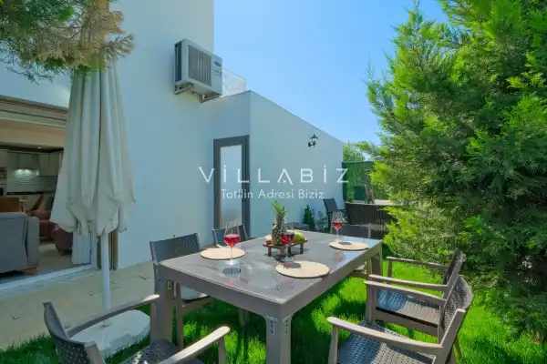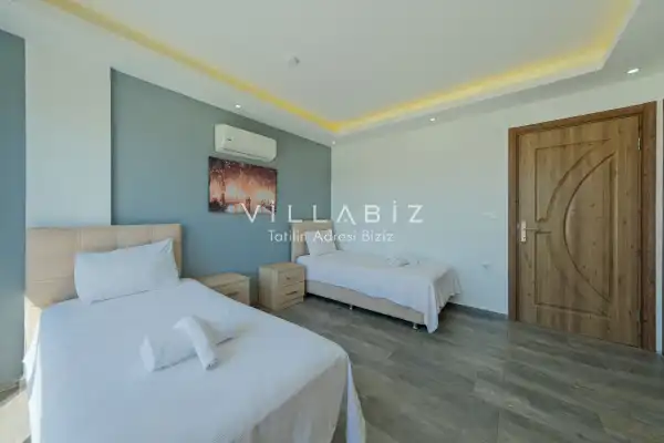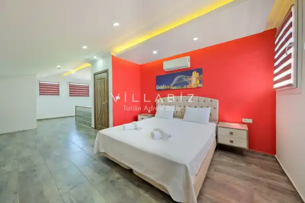 Toplam 3 yatak odasından oluşmuş, 6 kişi konaklama kapasitesine sahiptir. Geniş aileler ve kalabalık arkadaş grupları için oldukça idealdir. Oldukça şık ve modern bir şekilde döşenmiş olan villamızda misafirlerimiz için her şey düşünülmüştür. Havuz terasında bulunan şezlonglarda güneşlenebilir, bahçe masasında muhteşem yemekler yiyebilir, salıncakta sallanıp keyifli dakikalar geçirebilirsiniz.