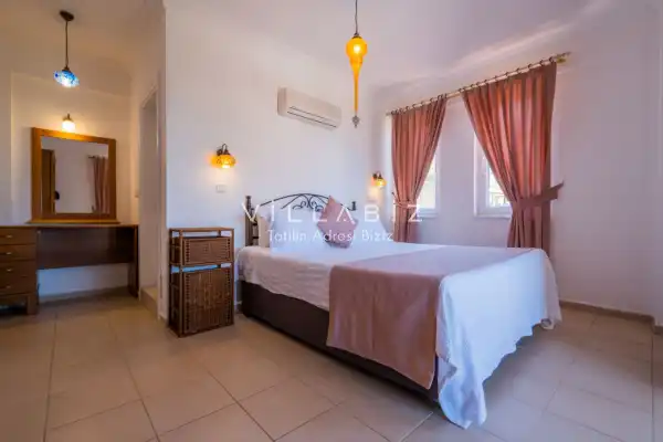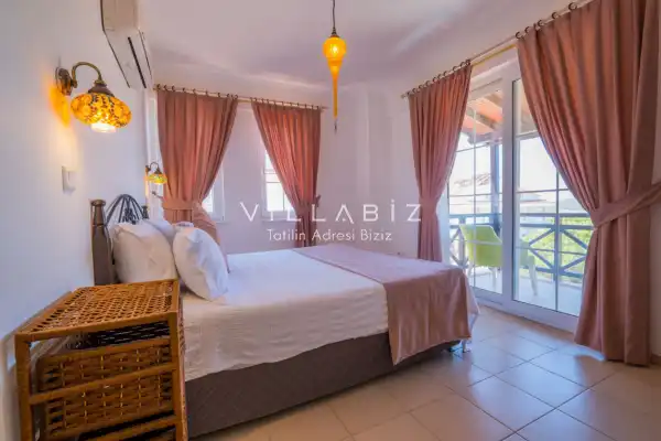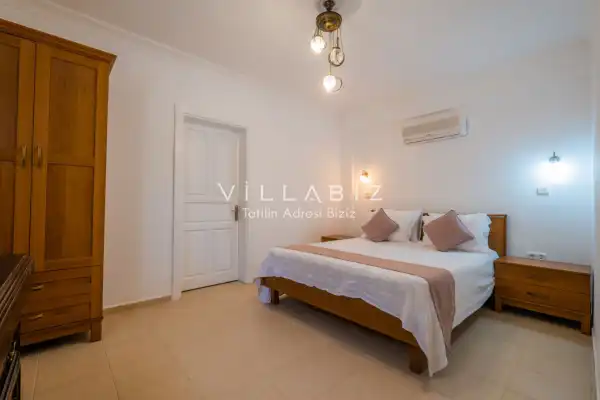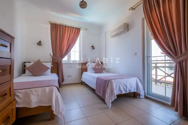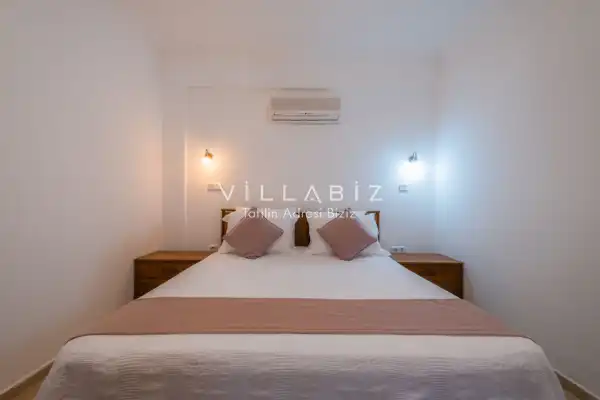 Toplam 4 yatak odasından oluşmuş, 8 kişi konaklama kapasitesine sahiptir. Geniş aileler ve kalabalık arkadaş grupları için oldukça idealdir. Oldukça şık ve modern bir şekilde döşenmiş olan villamızda misafirlerimiz için herşey düşünülmüştür. Havuz terasında bulunan şezlonglarda güneşlenebilir, bahçe masasında muhteşem yemekler yiyebilir, salıncakta sallanıp keyifli dakikalar geçirebilirsiniz.