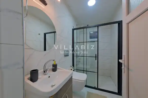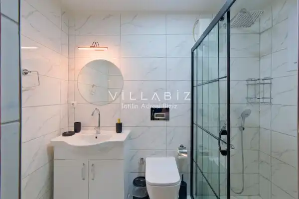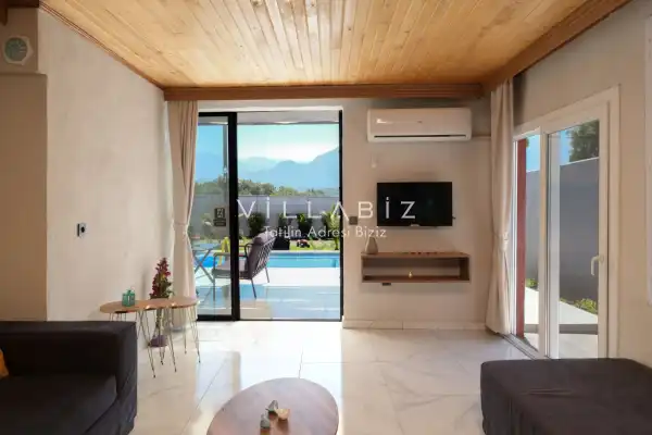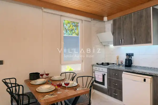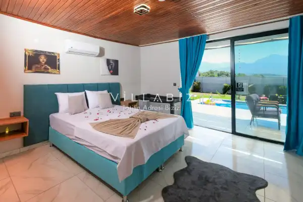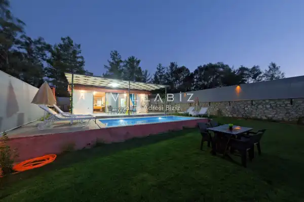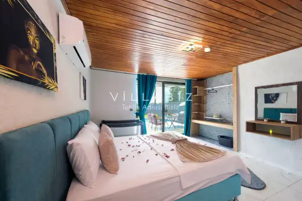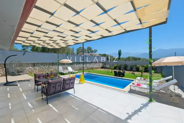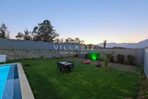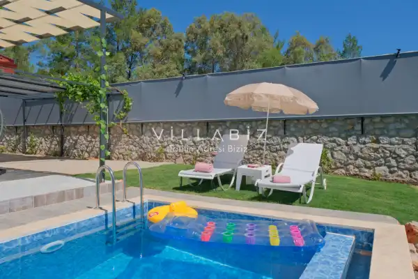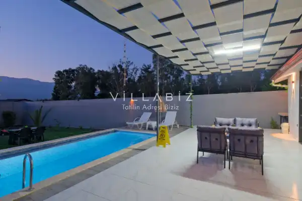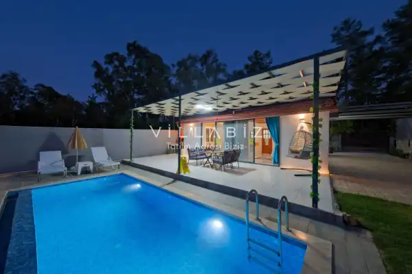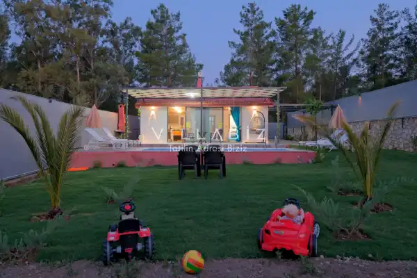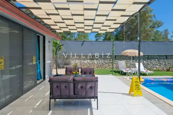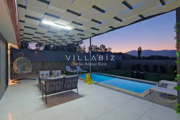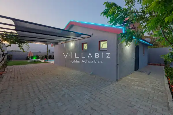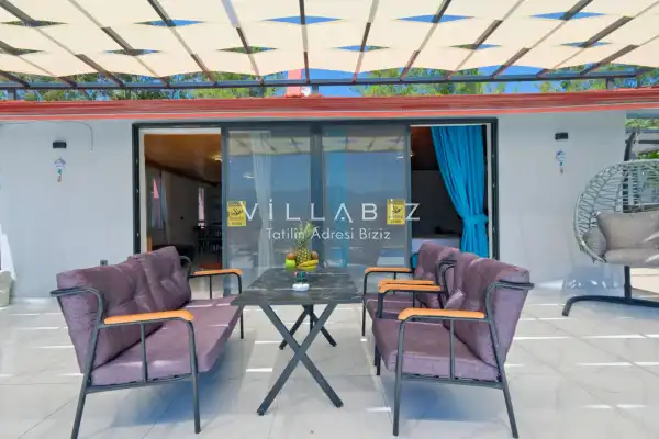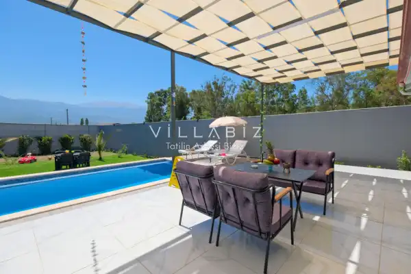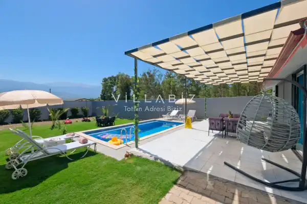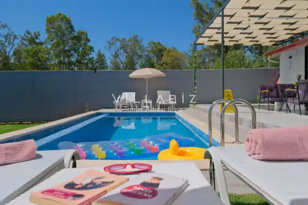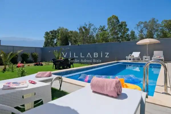 Oldukça şık ve modern bir şekilde döşenmiş olan villamızda misafirlerimiz için her şey düşünülmüştür. Havuz terasında bulunan şezlonglarda güneşlenebilir, bahçe masasında muhteşem yemekler yiyebilir, salıncakta sallanıp keyifli dakikalar geçirebilirsiniz