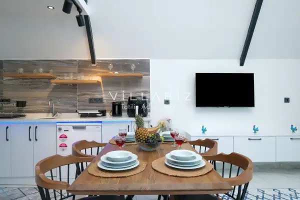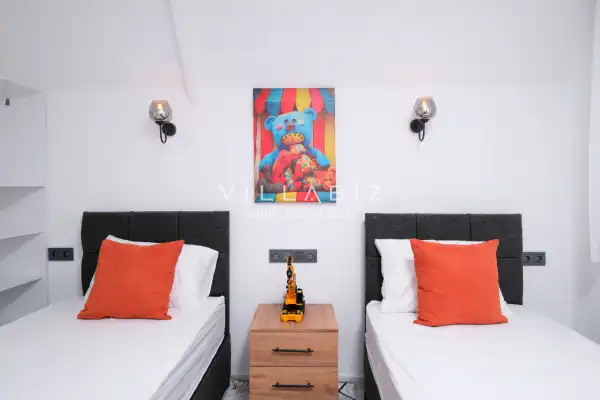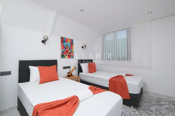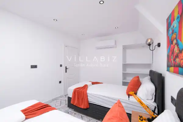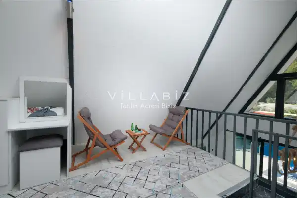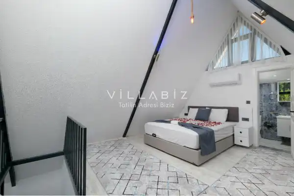 Toplam 2 yatak odasından oluşmuş, 4 kişi konaklama kapasitesine sahiptir. Çekirdek aileler ve arkadaş grupları için oldukça idealdir. Oldukça şık ve modern bir şekilde döşenmiş olan villamızda misafirlerimiz için her şey düşünülmüştür. Havuz terasında bulunan şezlonglarda güneşlenebilir, bahçe masasında muhteşem yemekler yiyebilir, salıncakta sallanıp keyifli dakikalar geçirebilirsiniz.