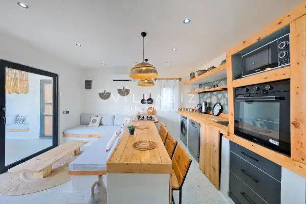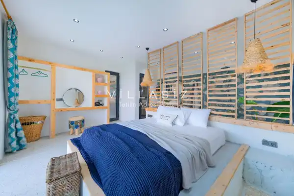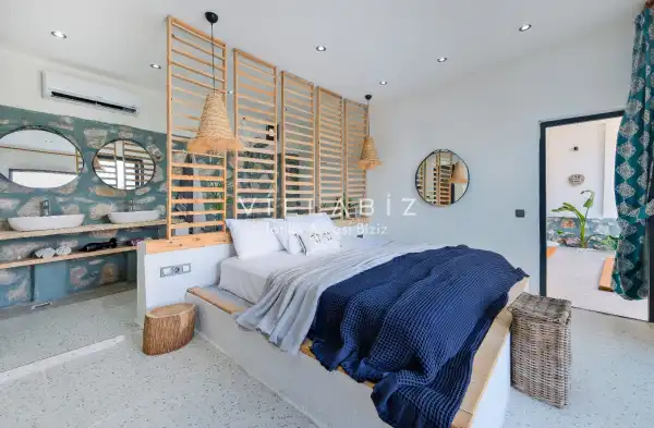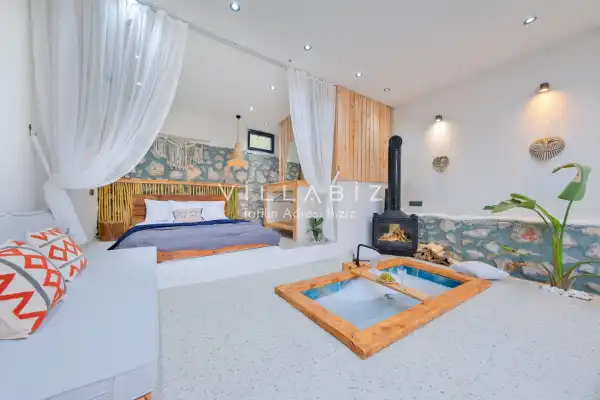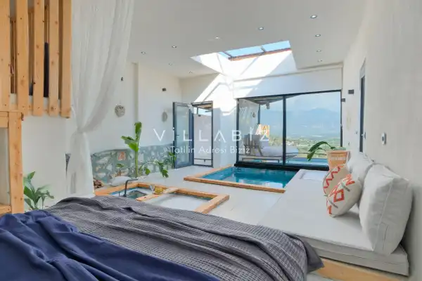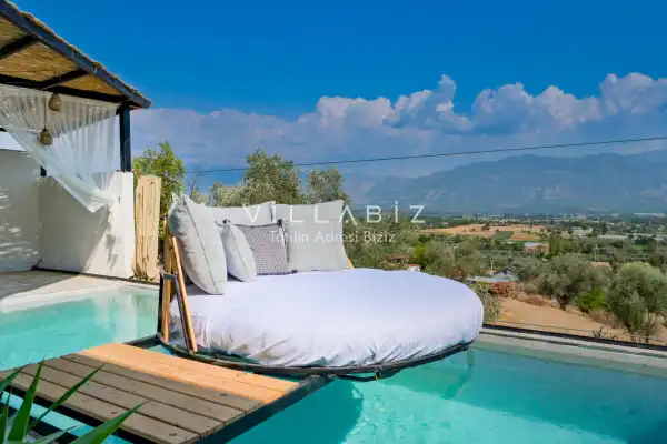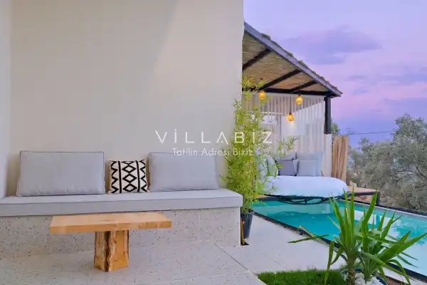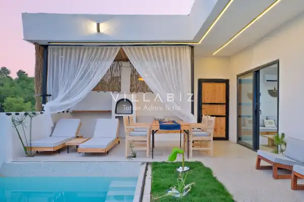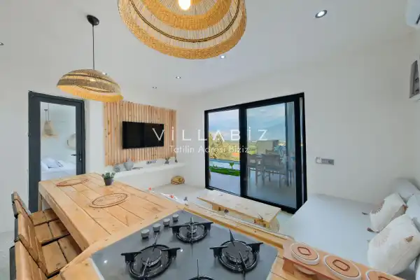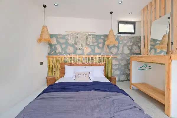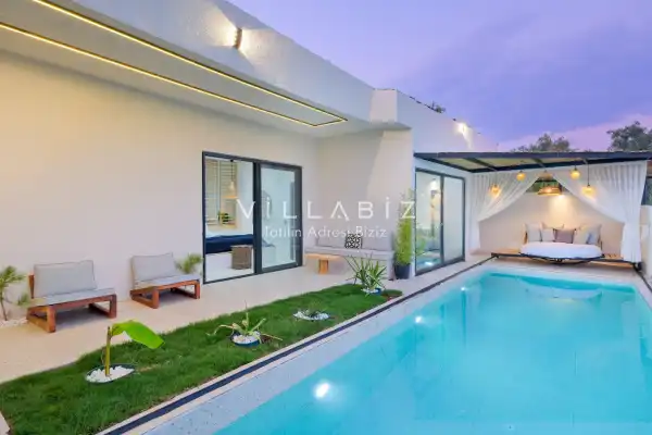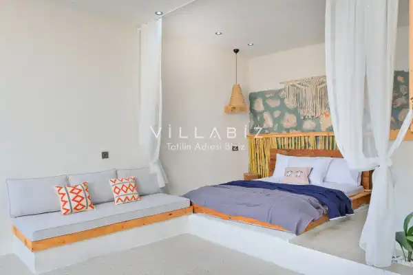 Toplam 2 yatak odasından oluşmuş, 4 kişi konaklama kapasitesine sahiptir. Çekirdek aileler ve arkadaş grupları ve balayı çiftleri için oldukça idealdir. Oldukça şık ve modern bir şekilde döşenmiş olan villamızda misafirlerimiz için her şey düşünülmüştür. Havuz terasında bulunan şezlonglarda güneşlenebilir, bahçe masasında muhteşem yemekler yiyebilir, salıncakta sallanıp keyifli dakikalar geçirebilirsiniz.