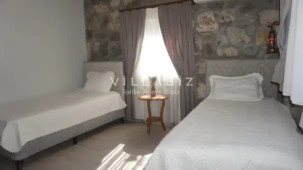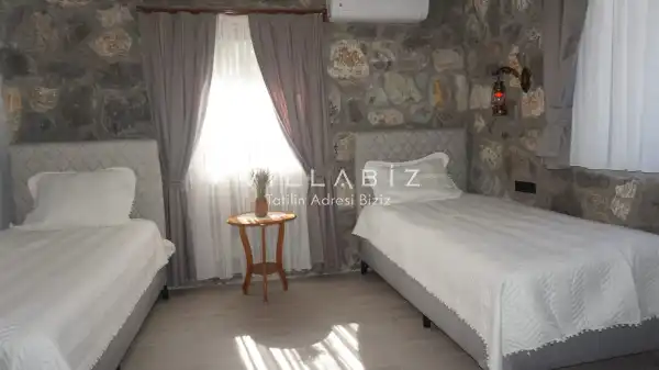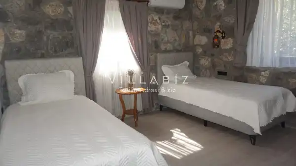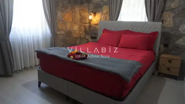 Toplam 2 yatak odasından oluşmuş, 4 kişi konaklama kapasitesine sahiptir. Çekirdek aileler ve arkadaş grupları ve balayı çiftleri için oldukça idealdir. Oldukça şık ve modern bir şekilde döşenmiş olan villamızda misafirlerimiz için her şey düşünülmüştür. Havuz terasında bulunan şezlonglarda güneşlenebilir, bahçe masasında muhteşem yemekler yiyebilir, salıncakta sallanıp keyifli dakikalar geçirebilirsiniz.