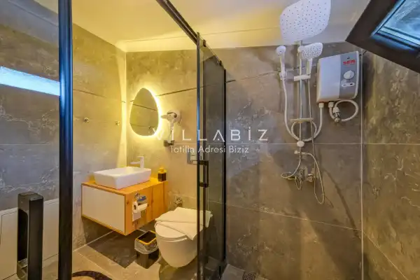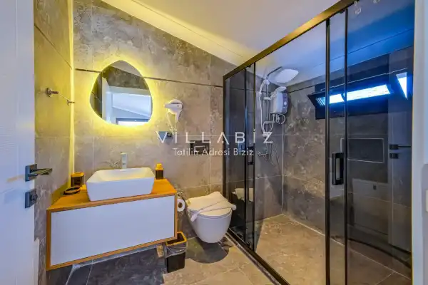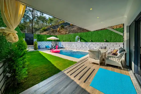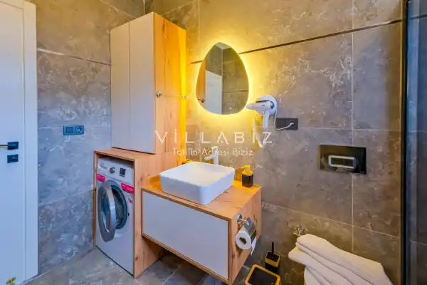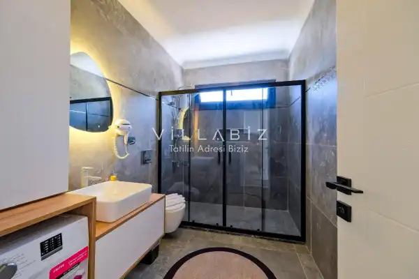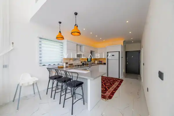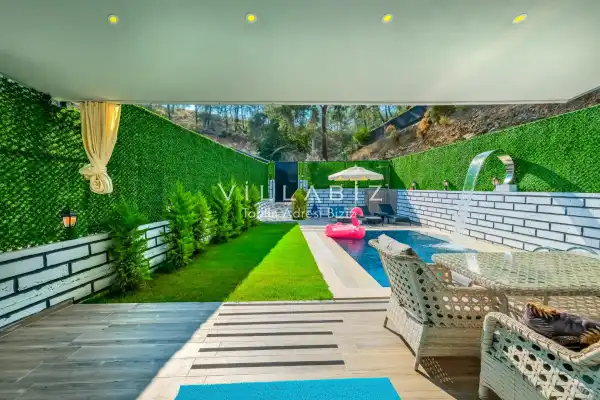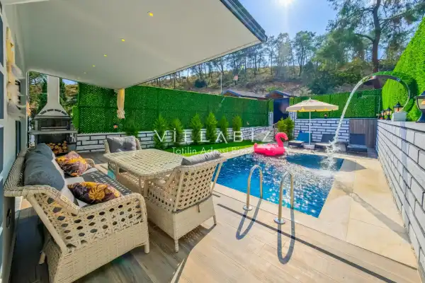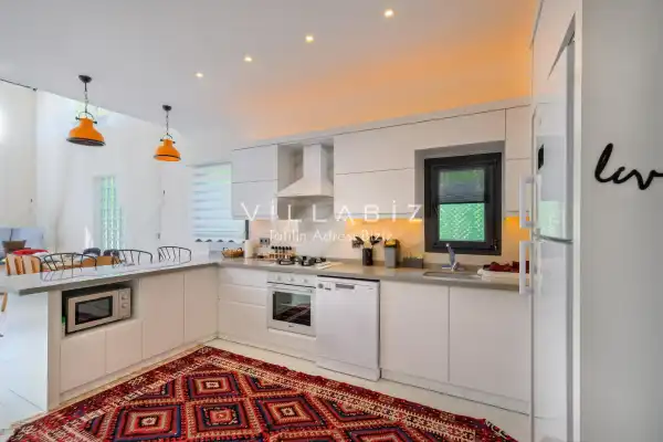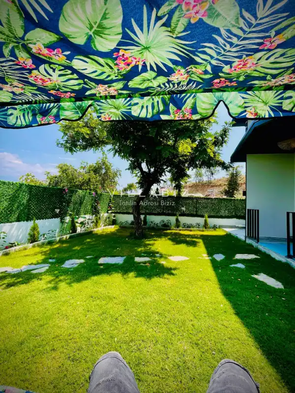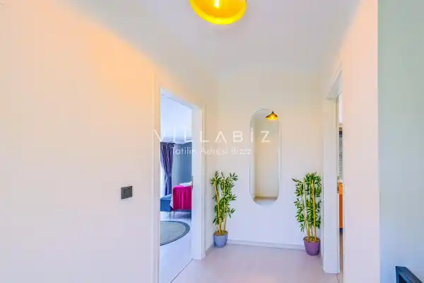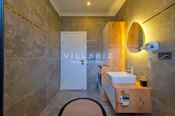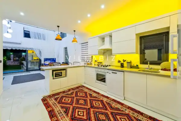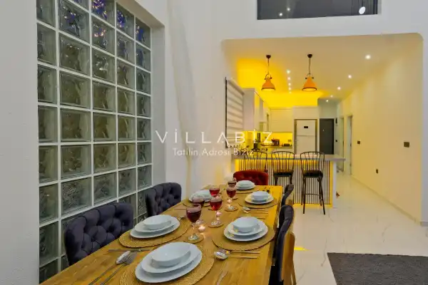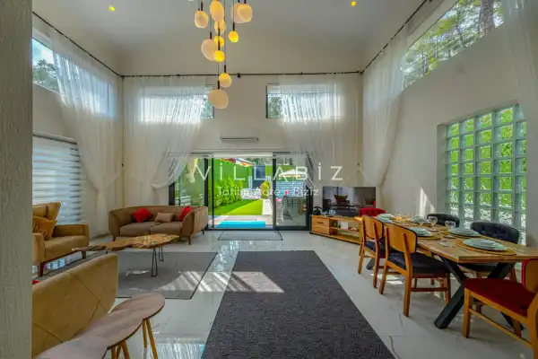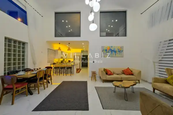 Toplam 3 yatak odasından oluşmuş, 6 kişi konaklama kapasitesine sahiptir. Geniş aileler ve kalabalık arkadaş grupları için oldukça idealdir. Oldukça şık ve modern bir şekilde döşenmiş olan villamızda misafirlerimiz için her şey düşünülmüştür. Havuz terasında bulunan şezlonglarda güneşlenebilir, bahçe masasında muhteşem yemekler yiyebilir, salıncakta sallanıp keyifli dakikalar geçirebilirsiniz.