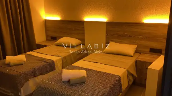 Toplam 2 yatak odasından oluşmuş, 4 kişi konaklama kapasitesine sahiptir. Geniş aileler ve kalabalık arkadaş grupları için oldukça idealdir. Oldukça şık ve modern bir şekilde döşenmiş olan villamızda misafirlerimiz için herşey düşünülmüştür. Havuz terasında bulunan şezlonglarda güneşlenebilir, bahçe masasında muhteşem yemekler yiyebilir, salıncakta sallanıp keyifli dakikalar geçirebilirsiniz.