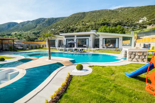 Villamız Antalya’nın en çok tercih edilen tatil bölgesi Kaş/Kalkan mevkiinde yer almaktadır. Masmavi koylara ve muhteşem adalar manzarasına hakim bir noktadadır. Doğa içerisinde, bol oksijenli tertemiz havasıyla konaklayanlarına sağlıklı ve dingin bir tatilin kapılarını aralamaktadır