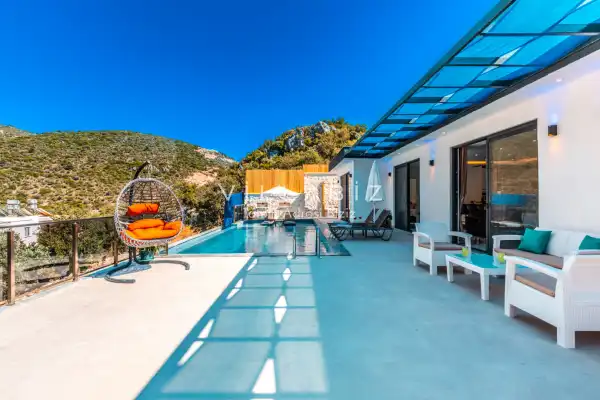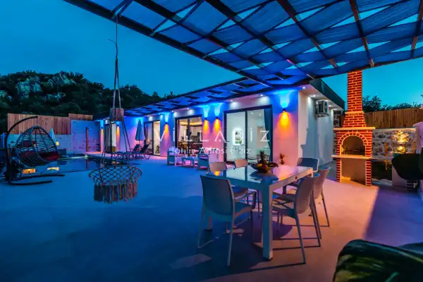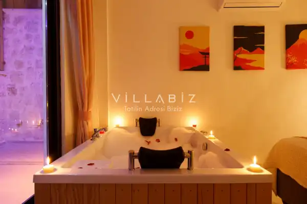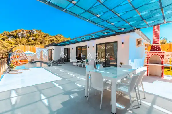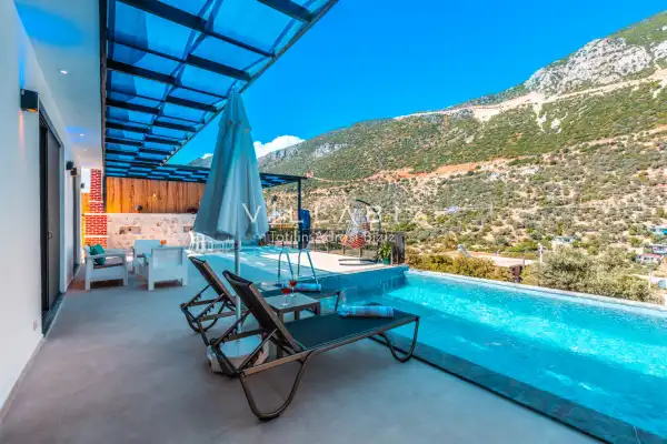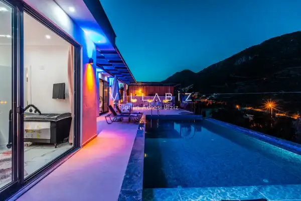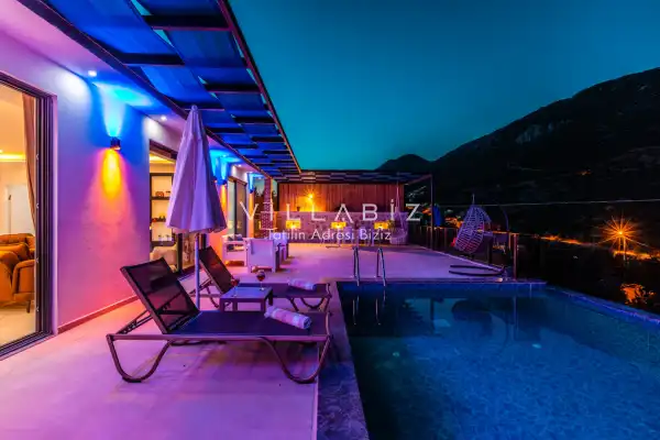 Villamız Antalya’nın en çok tercih edilen tatil bölgesi Kaş/Kalkan mevkiinde yer almaktadır. Masmavi koylara ve muhteşem adalar manzarasına hakim bir noktadadır. Doğa içerisinde, bol oksijenli tertemiz havasıyla konaklayanlarına sağlıklı ve dingin bir tatilin kapılarını aralamaktadır
