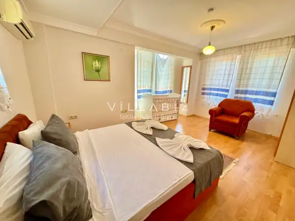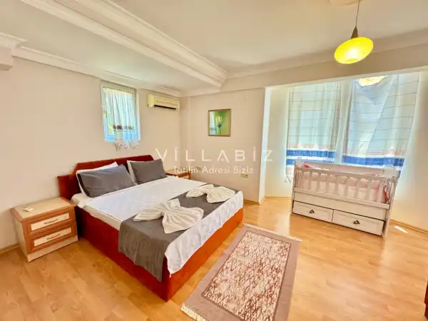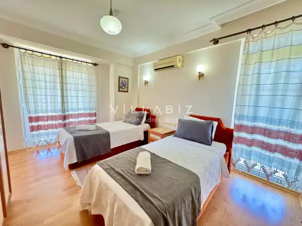Toplam 4 yatak odasından oluşmuş, 8 kişi konaklama kapasitesine sahiptir. Geniş aileler ve kalabalık arkadaş grupları için oldukça idealdir. Oldukça şık ve modern bir şekilde döşenmiş olan villamızda misafirlerimiz için her şey düşünülmüştür. Havuz terasında bulunan şezlonglarda güneşlenebilir, bahçe masasında muhteşem yemekler yiyebilir, salıncakta sallanıp keyifli dakikalar geçirebilirsiniz.