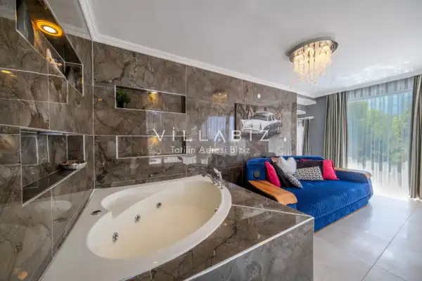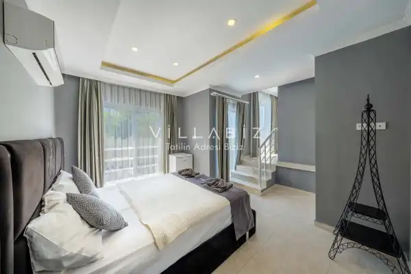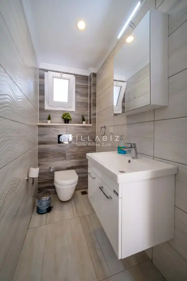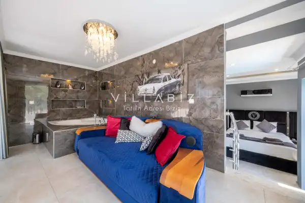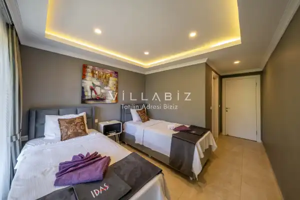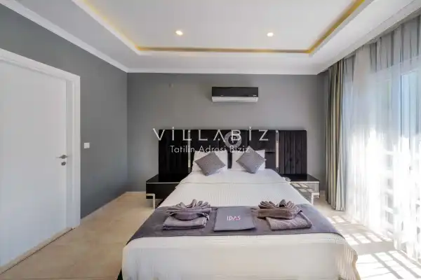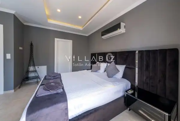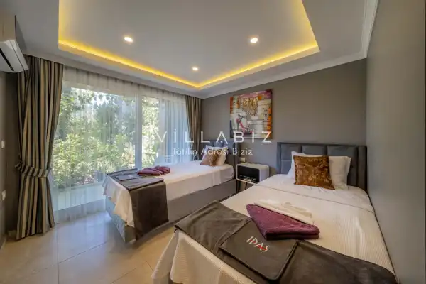 Toplam 3 yatak odasından oluşmuş, 6 kişi konaklama kapasitesine sahiptir. Geniş aileler ve kalabalık arkadaş grupları için oldukça idealdir. Oldukça şık ve modern bir şekilde döşenmiş olan villamızda misafirlerimiz için herşey düşünülmüştür. Havuz terasında bulunan şezlonglarda güneşlenebilir, bahçe masasında muhteşem yemekler yiyebilir, salıncakta sallanıp keyifli dakikalar geçirebilirsiniz.