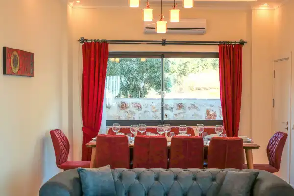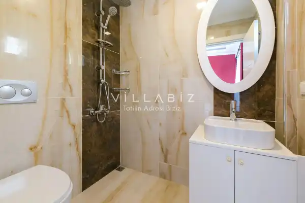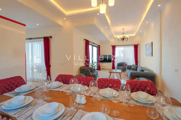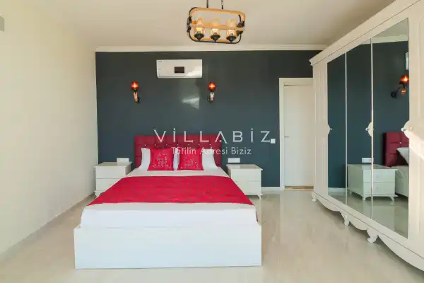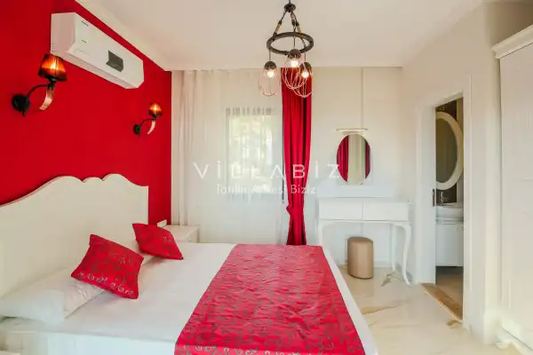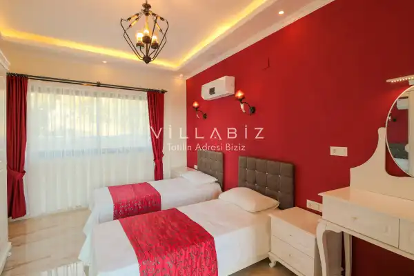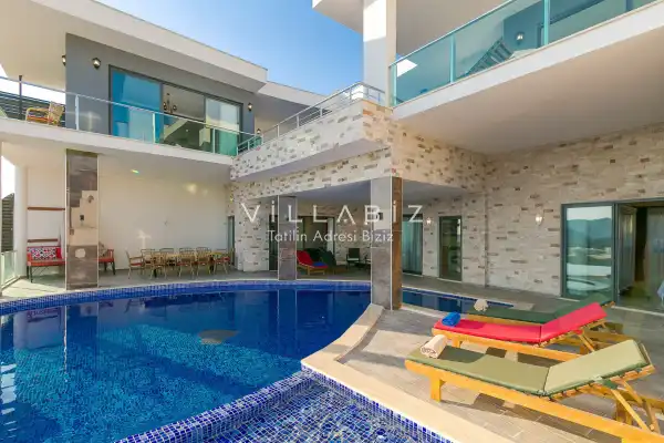 Toplam 5 yatak odasından oluşmuş, 10 kişi konaklama kapasitesine sahiptir. Geniş aileler ve kalabalık arkadaş grupları için oldukça idealdir. Oldukça şık ve modern bir şekilde döşenmiş olan villamızda misafirlerimiz için her şey düşünülmüştür. Havuz terasında bulunan şezlonglarda güneşlenebilir, bahçe masasında muhteşem yemekler yiyebilir, salıncakta sallanıp keyifli dakikalar geçirebilirsiniz