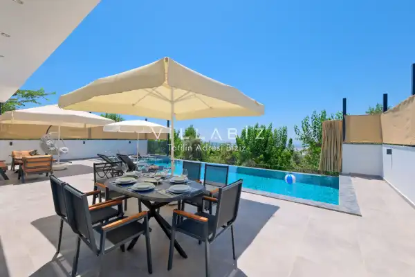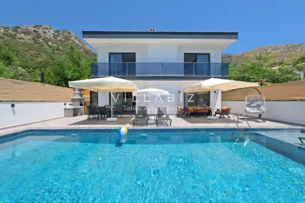 Villamız Antalya’nın en çok tercih edilen tatil bölgesi Kaş/Kalkan Üzümlü mevkiinde yer almaktadır. Masmavi koylara ve muhteşem adalar manzarasına hakim bir noktadadır. Doğa içerisinde, bol oksijenli tertemiz havasıyla konaklayanlarına sağlıklı ve dingin bir tatilin kapılarını aralamaktadır