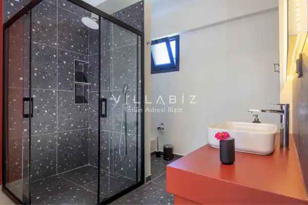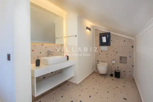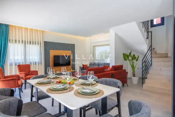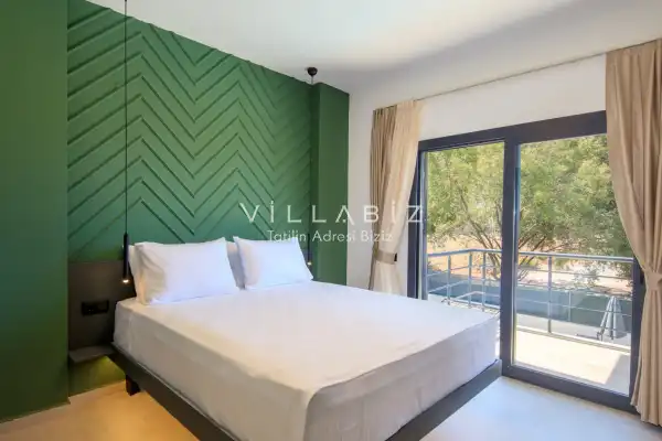 Toplam 3 yatak odasından oluşmuş, 6  kişi konaklama kapasitesine sahiptir. Geniş aileler ve kalabalık arkadaş grupları için oldukça idealdir. Oldukça şık ve modern bir şekilde döşenmiş olan villamızda misafirlerimiz için herşey düşünülmüştür. Havuz terasında bulunan şezlonglarda güneşlenebilir, bahçe masasında muhteşem yemekler yiyebilir, salıncakta sallanıp keyifli dakikalar geçirebilirsiniz.
