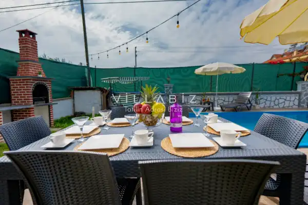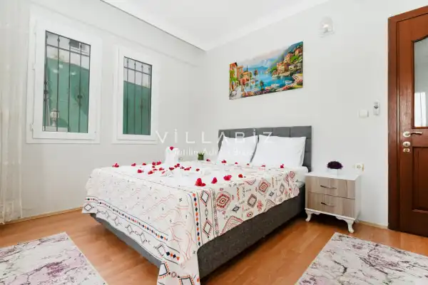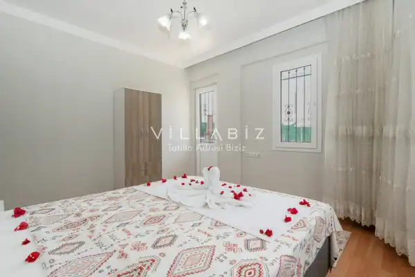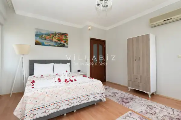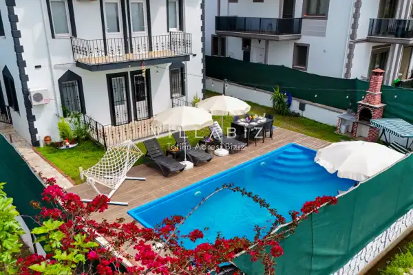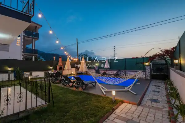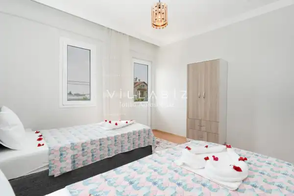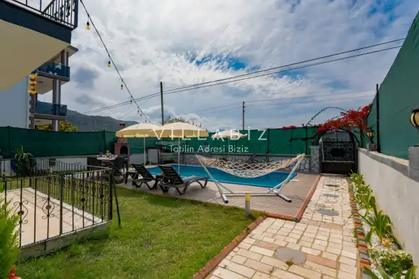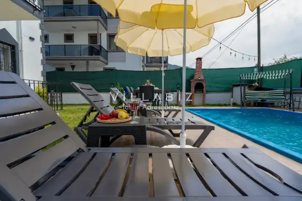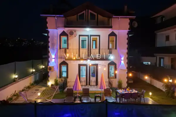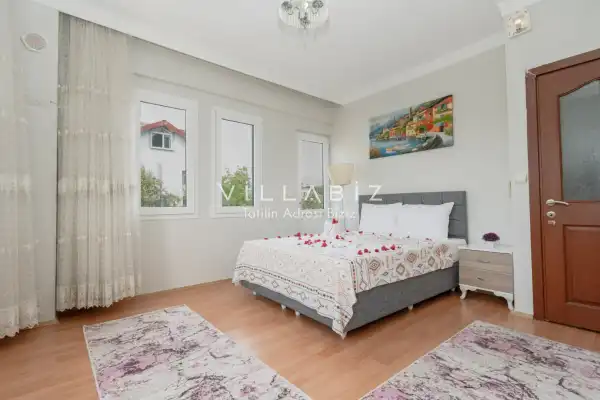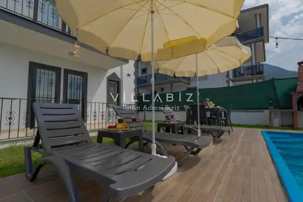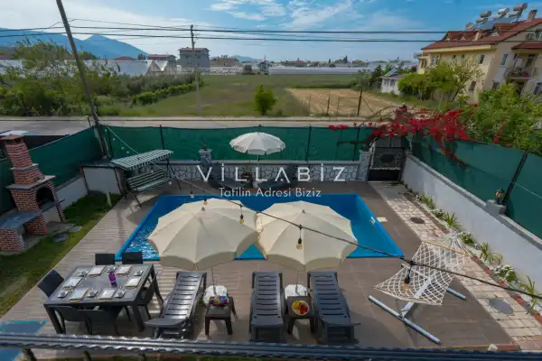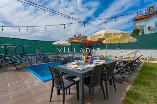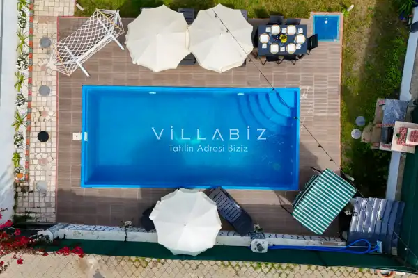 Toplam 3 yatak odasından oluşmuş, 7 kişi konaklama kapasitesine sahiptir. Geniş aileler ve kalabalık arkadaş grupları için oldukça idealdir. Oldukça şık ve modern bir şekilde döşenmiş olan villamızda misafirlerimiz için her şey düşünülmüştür. Havuz terasında bulunan şezlonglarda güneşin keyfini çıkarabilirsiniz.                                                                                                                                                                                                                                                                                                                                                                                                                                                   Ekstralar: