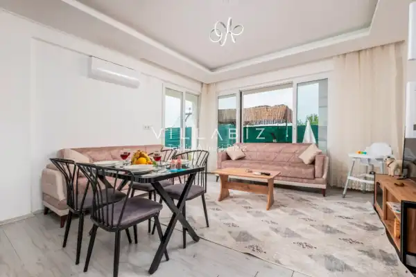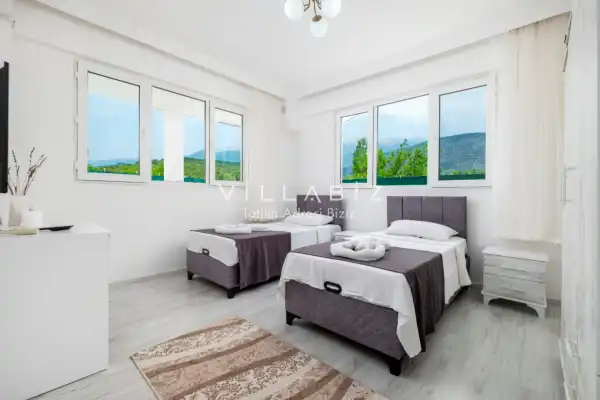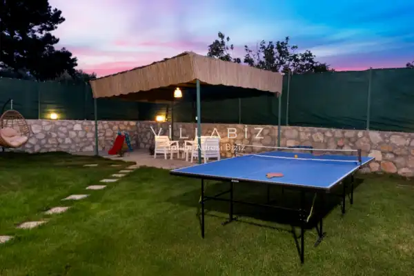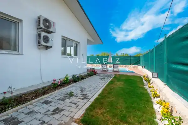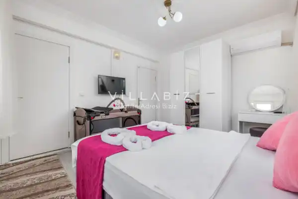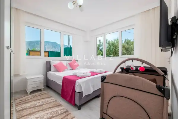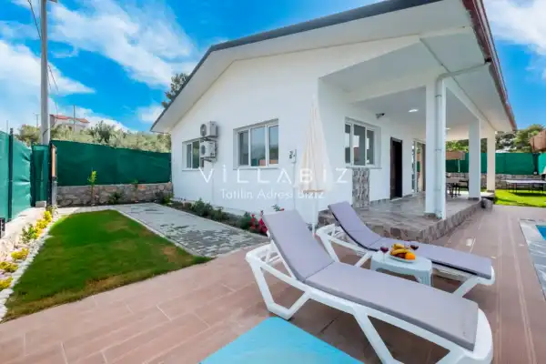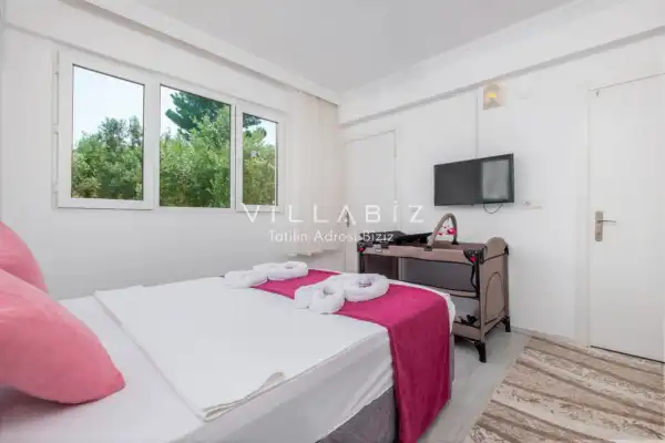 Toplam 2 yatak odasından oluşmuş, 4 kişi konaklama kapasitesine sahiptir. Çekirdek aileler ve arkadaş grupları için oldukça idealdir. Havuz terasında bulunan şezlonglarda güneşlenebilir, bahçe masasında muhteşem yemekler yiyebilir, salıncakta sallanıp keyifli dakikalar geçirebilirsiniz.