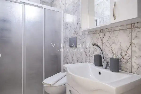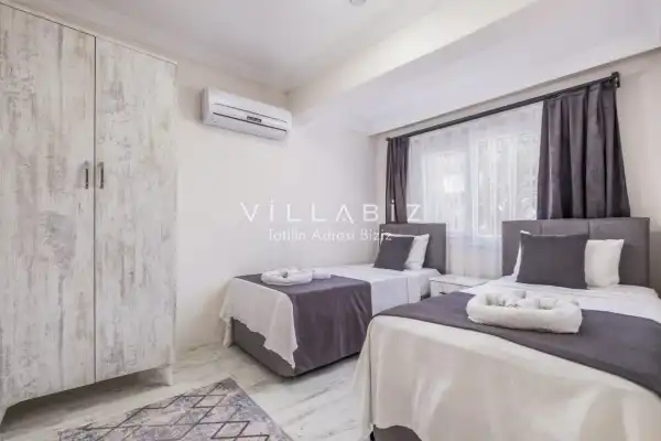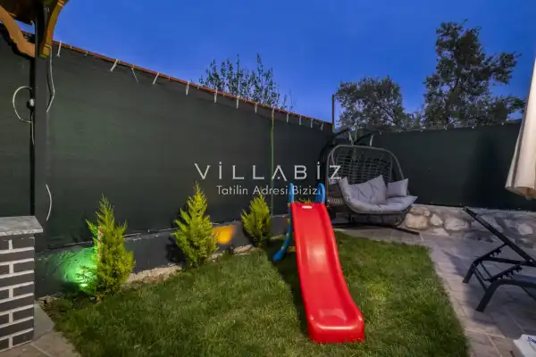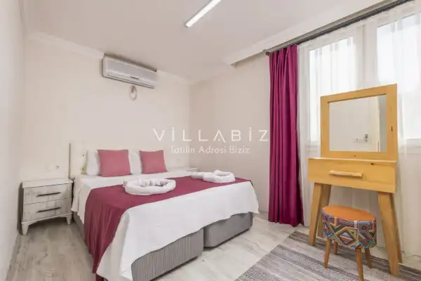 Toplam 2 yatak odasından oluşmuş, 4 kişi konaklama kapasitesine sahiptir. Çekirdek aileler ve arkadaş grupları için oldukça idealdir. Oldukça şık ve modern bir şekilde döşenmiş olan villamızda misafirlerimiz için her şey düşünülmüştür. Havuz terasında bulunan şezlonglarda güneşlenebilir, bahçe masasında muhteşem yemekler yiyebilir, salıncakta sallanıp keyifli dakikalar geçirebilirsiniz.