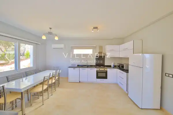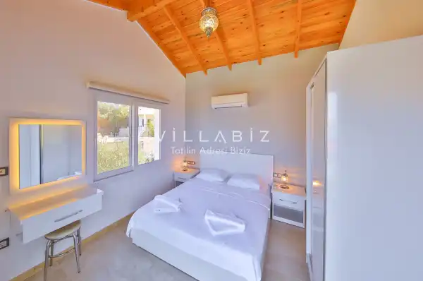 Toplam 3 yatak odasından oluşmuş, 6 kişi konaklama kapasitesine sahiptir. Çekirdek aileler ve kalabalık olmayan arkadaş grupları için oldukça idealdir. Oldukça şık ve modern bir şekilde döşenmiş olan villamızda misafirlerimiz için her şey düşünülmüştür. Havuz terasında bulunan şezlonglarda güneşlenebilir, bahçe masasında muhteşem yemekler yiyebilir, salıncakta sallanıp keyifli dakikalar geçirebilirsiniz.