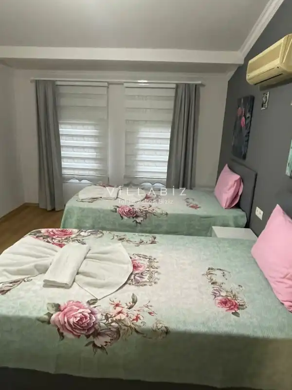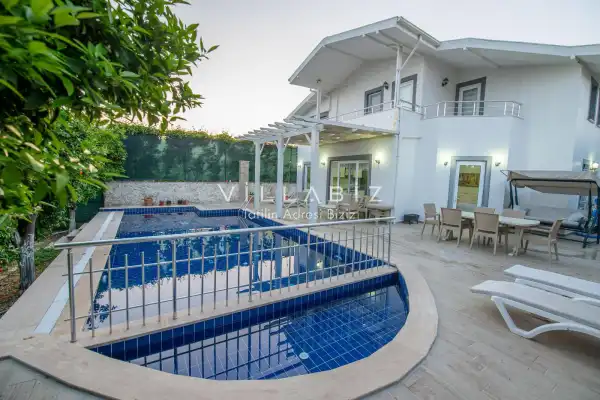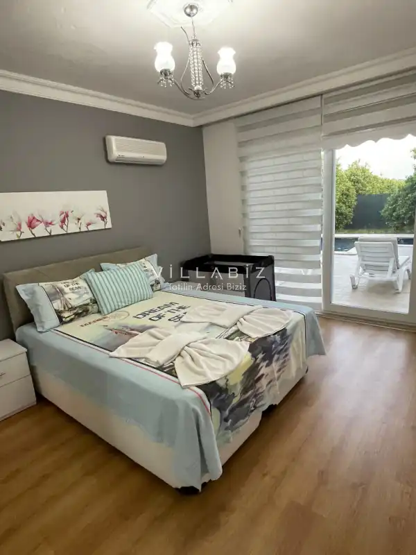 Toplam 4 yatak odasından oluşmuş, 8 kişi konaklama kapasitesine sahiptir. Geniş aileler ve kalabalık arkadaş grupları için oldukça idealdir. Oldukça şık ve modern bir şekilde döşenmiş olan villamızda misafirlerimiz için her şey düşünülmüştür. Havuz terasında bulunan şezlonglarda güneşlenebilir, bahçe masasında muhteşem yemekler yiyebilir, salıncakta sallanıp keyifli dakikalar geçirebilirsiniz.