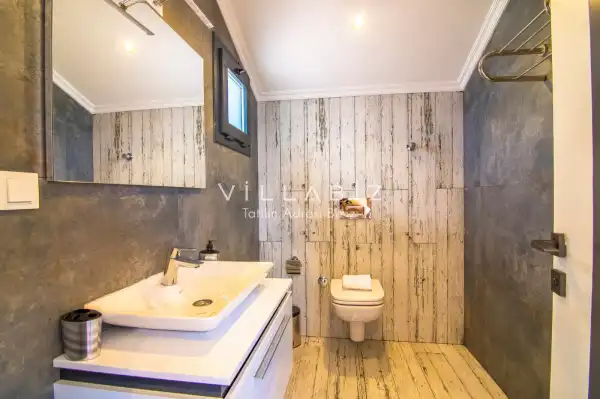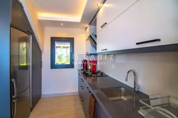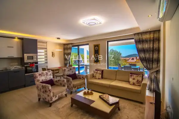 Toplam 3 yatak odasından oluşmuş, 6 kişi konaklama kapasitesine sahiptir. Geniş aileler ve kalabalık arkadaş grupları için oldukça idealdir. Oldukça şık ve modern bir şekilde döşenmiş olan villamızda misafirlerimiz için her şey düşünülmüştür. Havuz terasında bulunan şezlonglarda güneşlenebilir, bahçe masasında muhteşem yemekler yiyebilir, salıncakta sallanıp keyifli dakikalar geçirebilirsiniz.