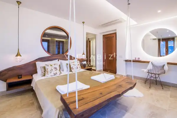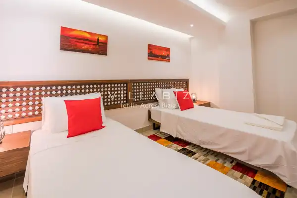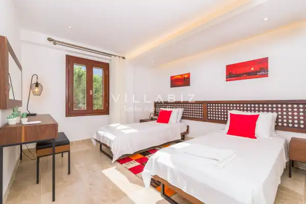 Toplam 4 yatak odasından oluşmuş, 8 kişi konaklama kapasitesine sahiptir. büyük aileler ve arkadaş grupları için . Oldukça idealdir şık ve modern bir şekilde döşenmiş olan villamızda misafirlerimiz için her şey düşünülmüştür. Havuz terasında bulunan şezlonglarda güneşlenebilir, bahçe masasında muhteşem yemekler yiyebilir , salıncakta sallanıp keyifli dakikalar geçirebilirsiniz.