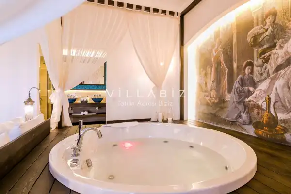 Muhteşem bir deniz manzarasına sahip olan villamız . Sevdiklerinizle birlikte günbatımına karşı içeceklerinizi yudumlayıp manzaranın tadını çıkarabilirsiniz. Villamızda bulunan jakuzi ise rahatlayıp tüm yılın yorgunluğunu üzerinizden atmanıza yardımcı olacaktır.