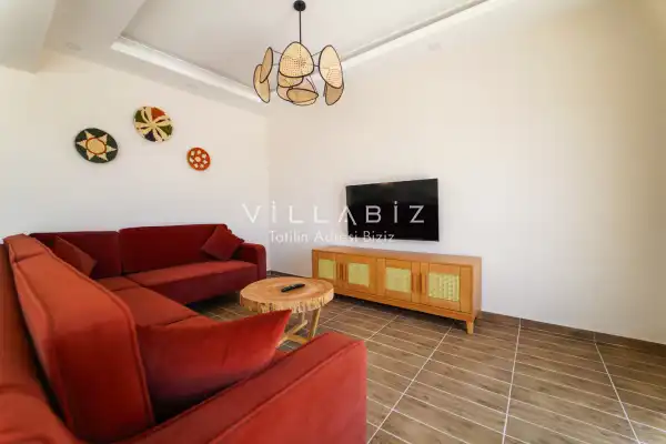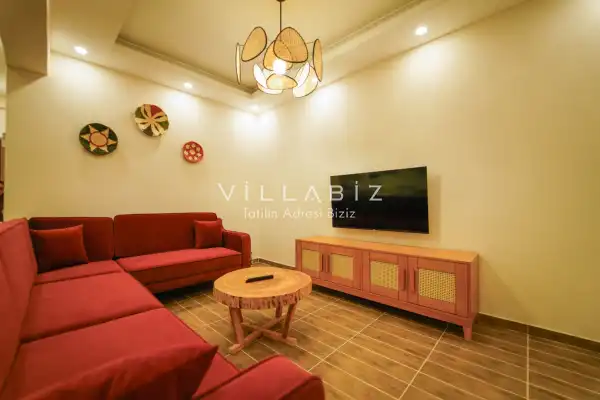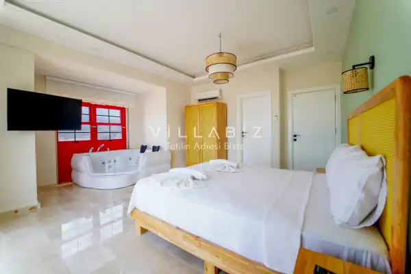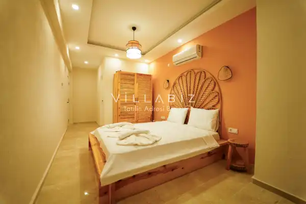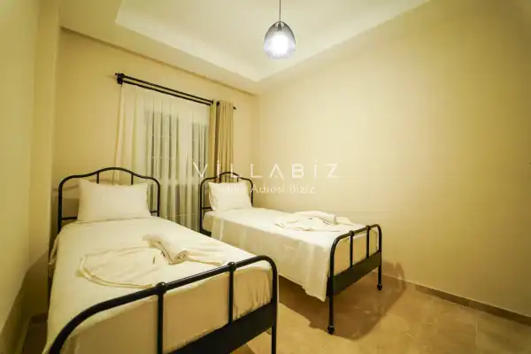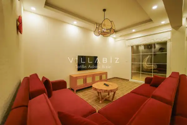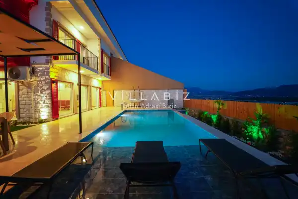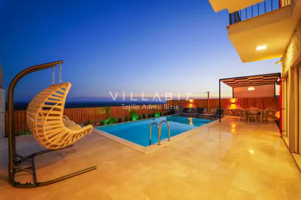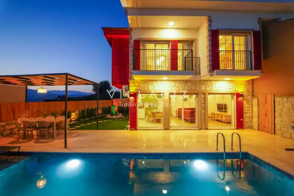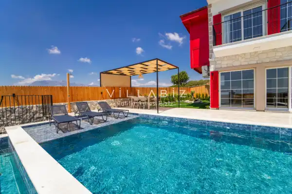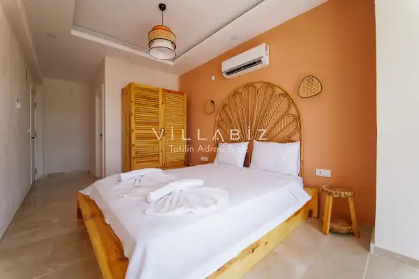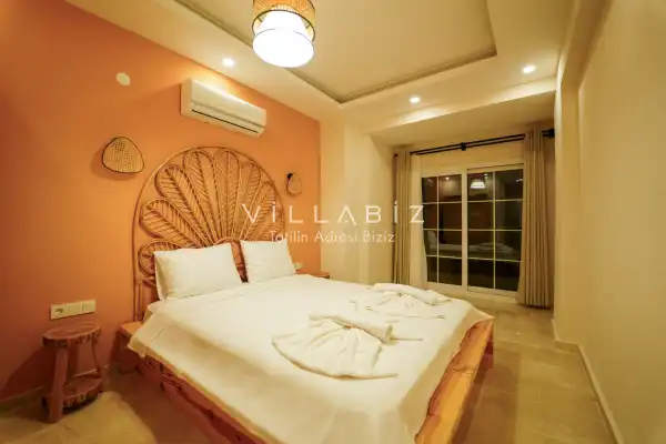 Toplam 3 yatak odasından oluşmuş, 6 kişi konaklama kapasitesine sahiptir. Geniş aileler ve kalabalık arkadaş grupları için oldukça idealdir. Oldukça şık ve modern bir şekilde döşenmiş olan villamızda misafirlerimiz için her şey düşünülmüştür. Havuz terasında bulunan şezlonglarda güneşlenebilir, bahçe masasında muhteşem yemekler yiyebilir, salıncakta sallanıp keyifli dakikalar geçirebilirsiniz.