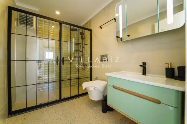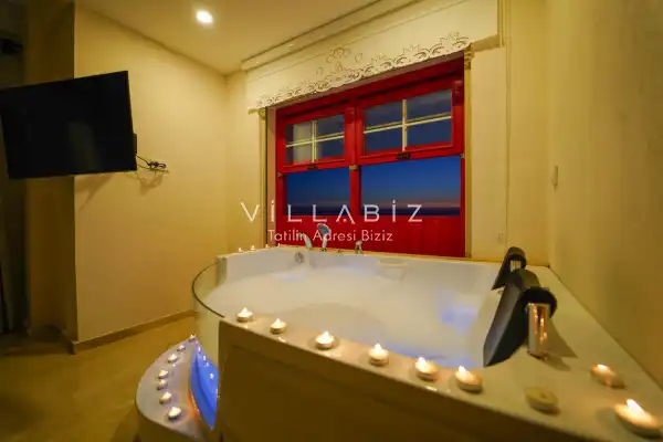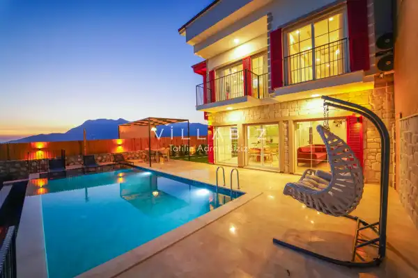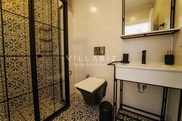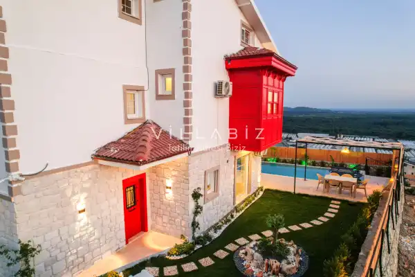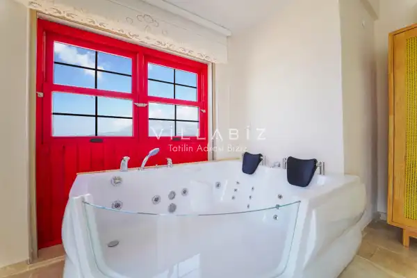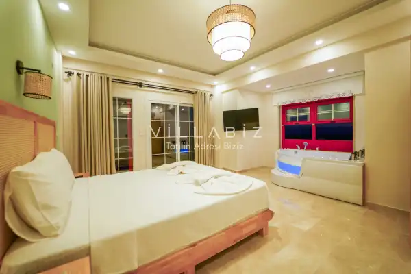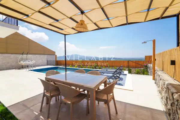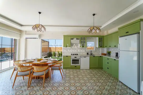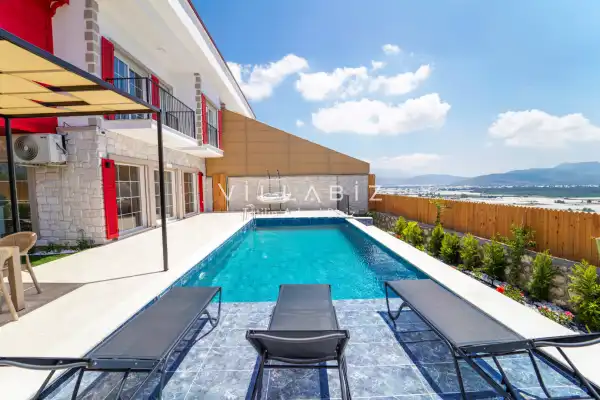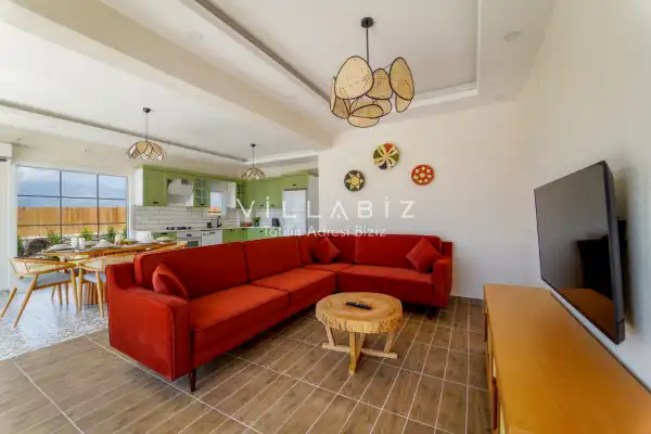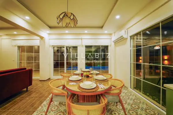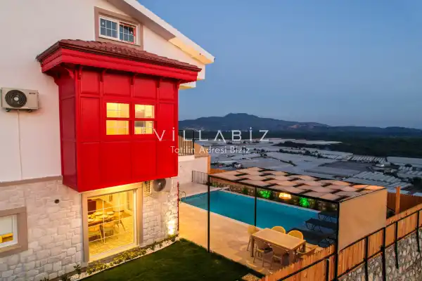 Toplam 3 yatak odasından oluşmuş, 6 kişi konaklama kapasitesine sahiptir. Geniş aileler ve kalabalık arkadaş grupları için oldukça idealdir. Oldukça şık ve modern bir şekilde döşenmiş olan villamızda misafirlerimiz için her şey düşünülmüştür. Havuz terasında bulunan şezlonglarda güneşlenebilir, bahçe masasında muhteşem yemekler yiyebilir, salıncakta sallanıp keyifli dakikalar geçirebilirsiniz.
