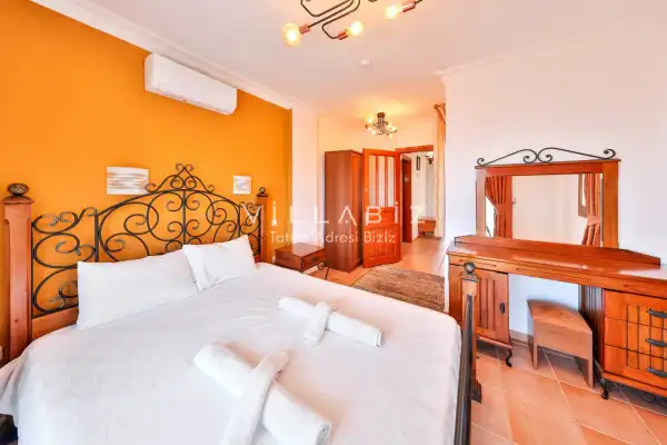 Villamız Antalya’nın gözde tatil beldesi haline gelmiş Kaş/Kalkan’ın panoramik manzarasıyla bilinen Kördere mevkiinde bulunmaktadır. Turuncu ve kırmızının hiç görmediğiniz tonlarına hakim bir günbatımına ve bakmaya doyamayacağınız deniz ve doğa manzarasına hakimdir. Dört tarafı çam ormanlarıyla kaplı sessiz sakin bir konumda olup, kargaşayı arkasında bırakıp huzur arayanlar için benzersiz lüks bir villa deneyimi sunmaktadır.