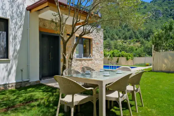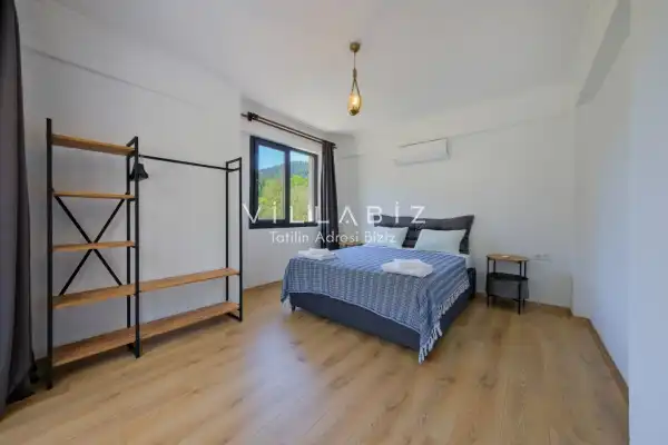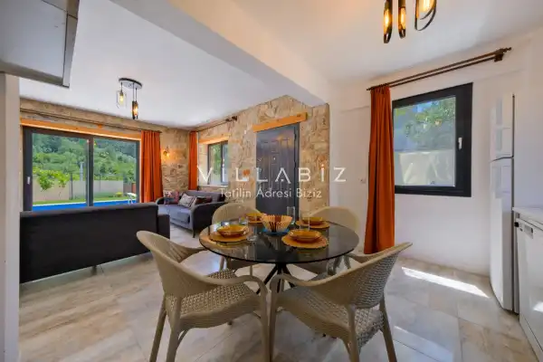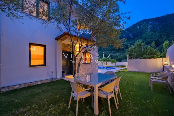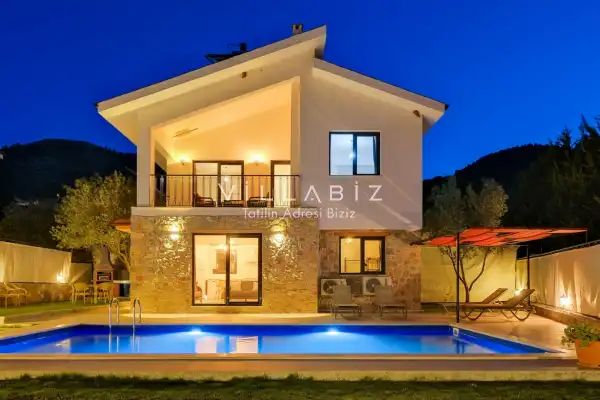 Villamız, Muğla'nın en güzel ilçelerinden biri olan Fethiye'nin Kızılbel mevkinde yer almaktadır. En sevilen tatil beldelerinden biri olan Fethiye, eşsiz güzellikleriyle misafirlerine unutulmaz bir tatil deneyimi sunar. Toplam 3 yatak odasından oluşmuş, 6 kişi konaklama kapasitesine sahiptir. Geniş aileler ve kalabalık arkadaş grupları için oldukça idealdir. Oldukça şık ve modern bir şekilde döşenmiş olan villamızda misafirlerimiz için her şey düşünülmüştür. Havuz terasında bulunan şezlonglarda güneşlenebilir, bahçe masasında muhteşem yemekler yiyebilir, doğa ile içiçe keyifli dakikalar geçirebilirsiniz.