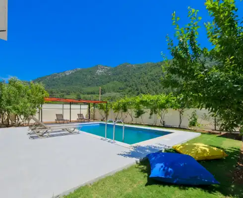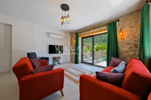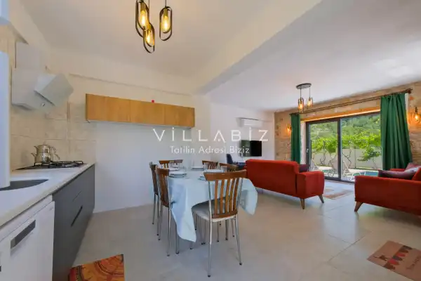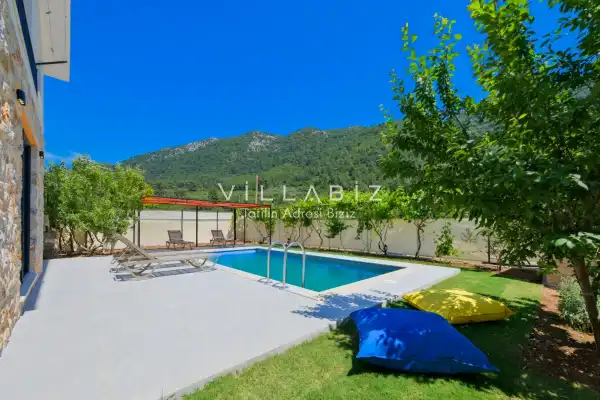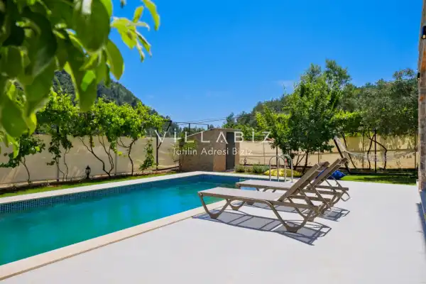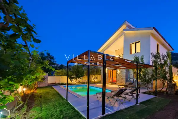 Villamız, Muğla'nın en güzel ilçelerinden biri olan Fethiye'nin Kızılbel mevkinde yer almaktadır. En sevilen tatil beldelerinden biri olan Fethiye, eşsiz güzellikleriyle misafirlerine unutulmaz bir tatil deneyimi sunar. Toplam 3 yatak odasından oluşmuş, 6 kişi konaklama kapasitesine sahiptir. Geniş aileler ve kalabalık arkadaş grupları için oldukça idealdir. Oldukça şık ve modern bir şekilde döşenmiş olan villamızda misafirlerimiz için her şey düşünülmüştür. Havuz terasında bulunan şezlonglarda güneşlenebilir, bahçe masasında muhteşem yemekler yiyebilir, doğa ile içiçe keyifli dakikalar geçirebilirsiniz.