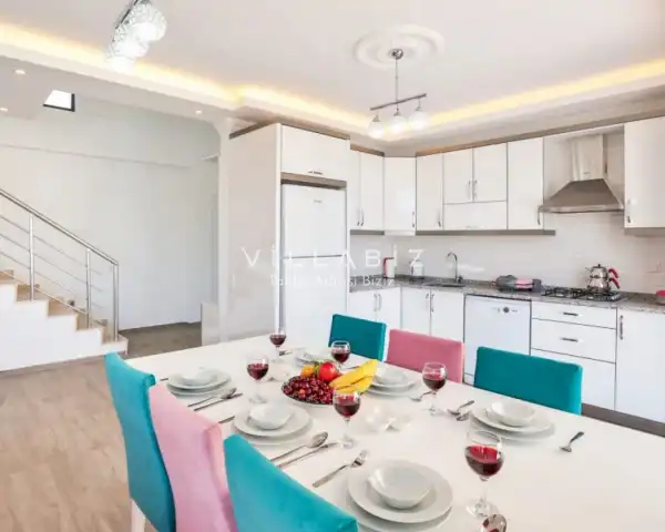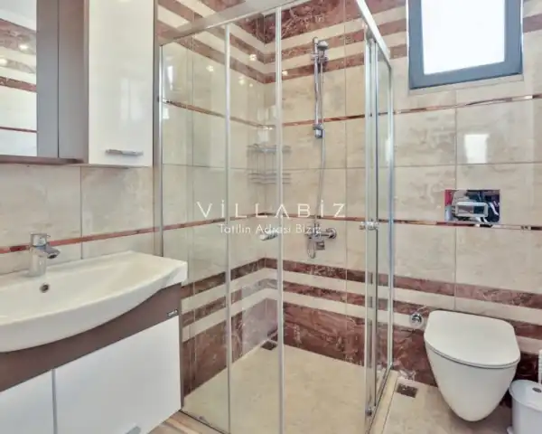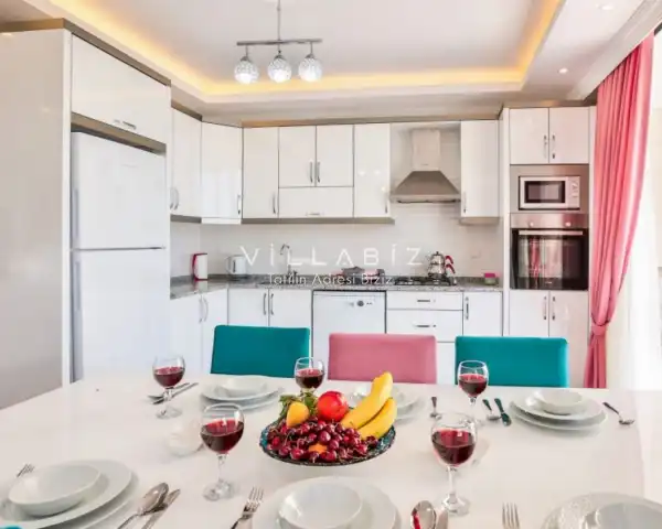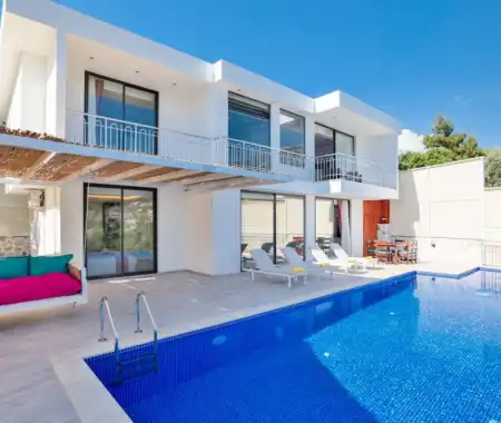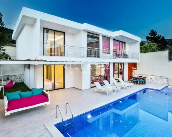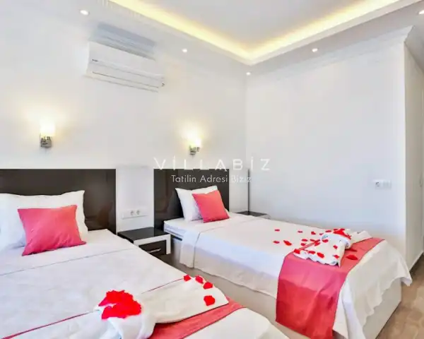 Toplam 3 yatak odasından oluşmuş, 6 kişi konaklama kapasitesine sahiptir. Geniş aileler ve kalabalık arkadaş grupları için oldukça idealdir. Oldukça şık ve modern bir şekilde döşenmiş olan villamızda misafirlerimiz için her şey düşünülmüştür. Havuz terasında bulunan şezlonglarda güneşlenebilir, bahçe masasında muhteşem yemekler yiyebilir, salıncakta sallanıp keyifli dakikalar geçirebilirsiniz.