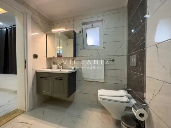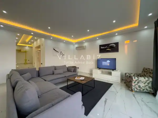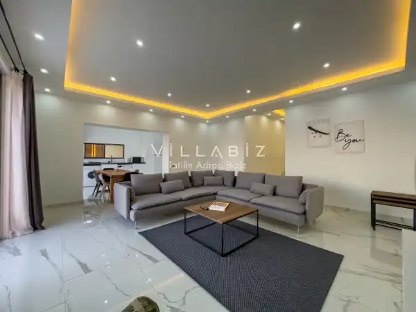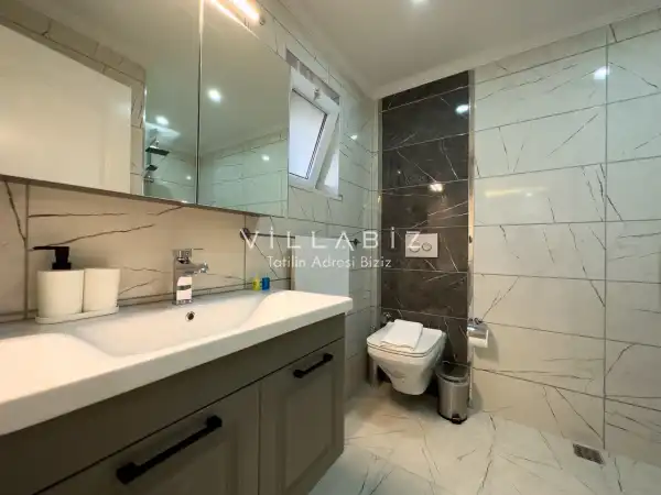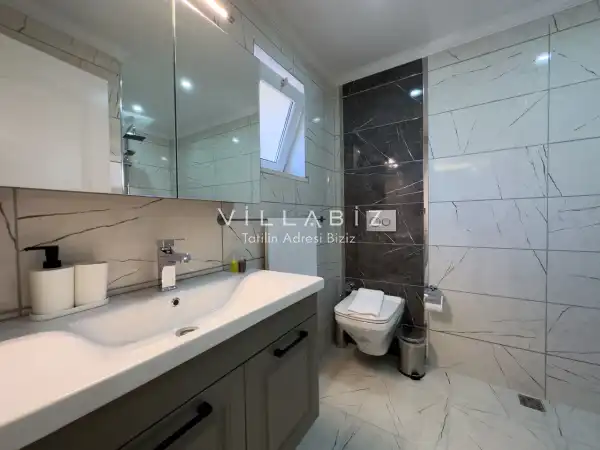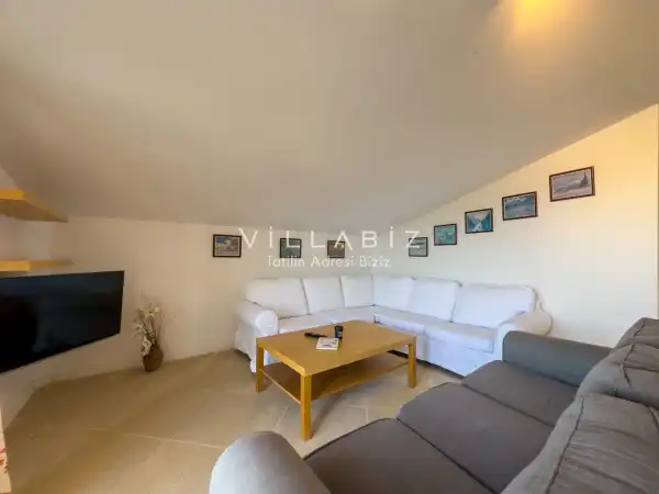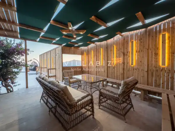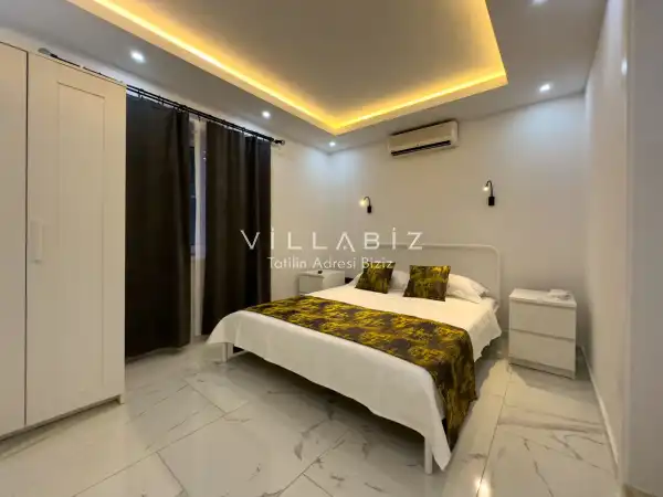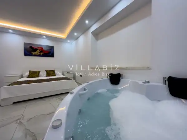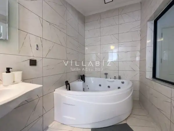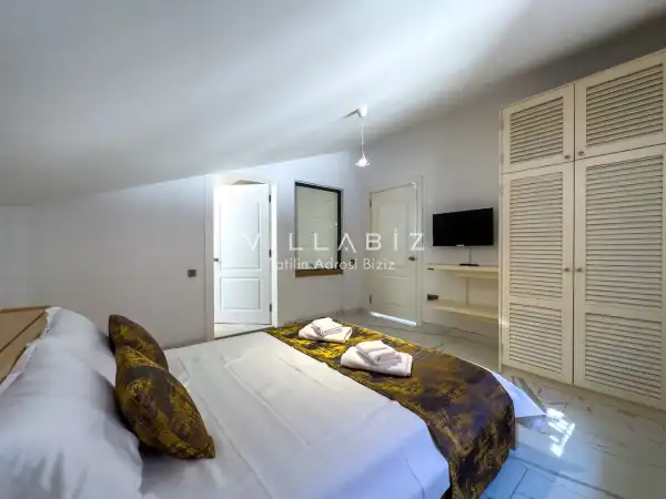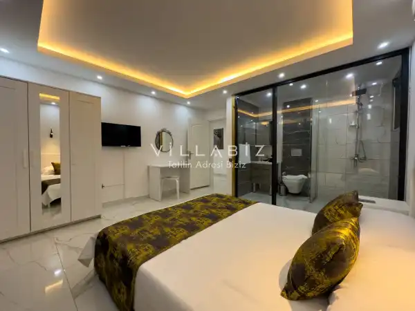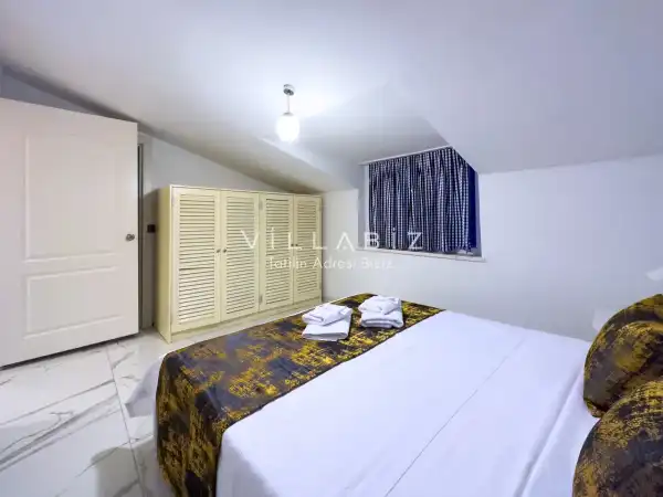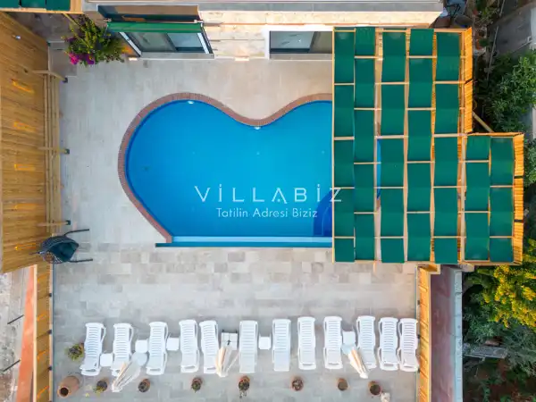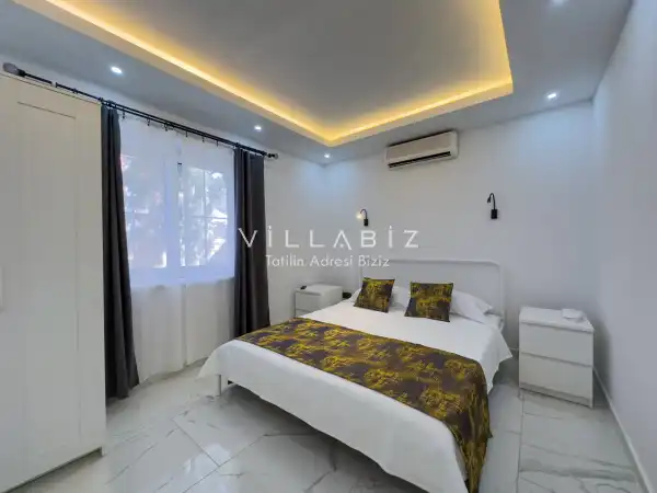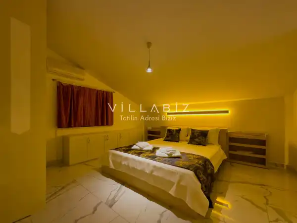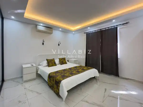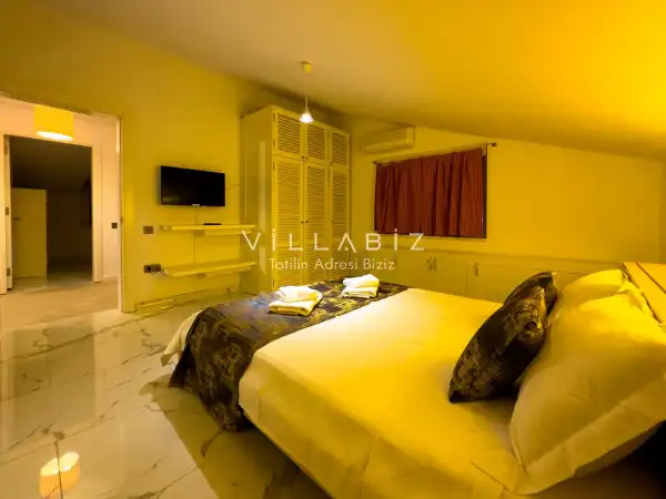 Toplam 5 yatak odasından oluşmuş, 10 kişi konaklama kapasitesine sahiptir. Geniş aileler ve kalabalık arkadaş grupları için oldukça idealdir. Oldukça şık ve modern bir şekilde döşenmiş olan villamızda misafirlerimiz için her şey düşünülmüştür. Havuz terasında bulunan şezlonglarda güneşlenebilir, bahçe masasında muhteşem yemekler yiyebilir, salıncakta sallanıp keyifli dakikalar geçirebilirsiniz.