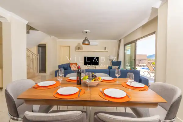 Villamız Antalya’nın en çok tercih edilen tatil bölgesi Kaş/Kalkan mevkiinde yer almaktadır. Masmavi koylara ve muhteşem adalar manzarasına hakim bir noktadadır. Doğa içerisinde, bol oksijenli tertemiz havasıyla konaklayanlarına sağlıklı ve dingin bir tatilin kapılarını aralamaktadır