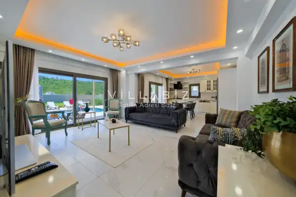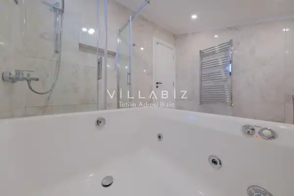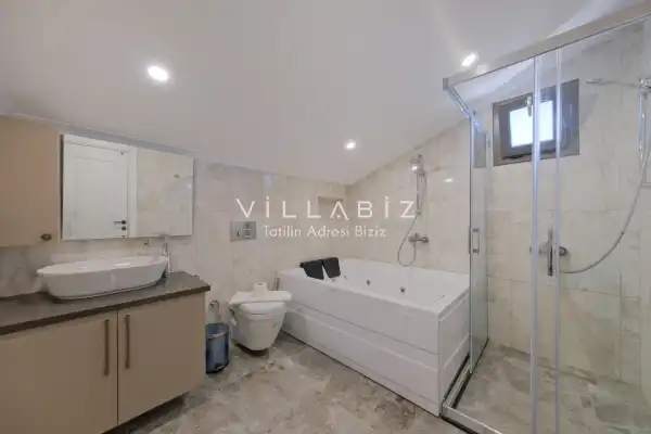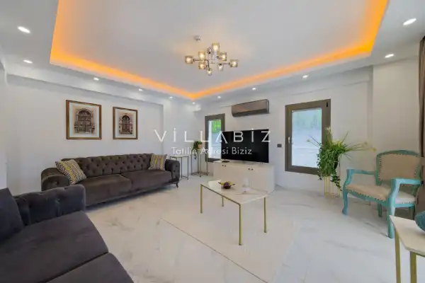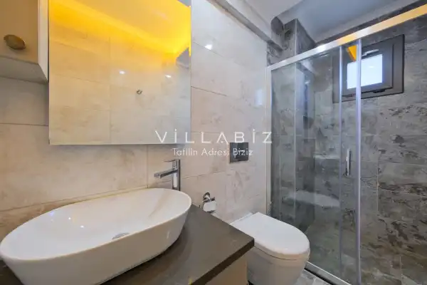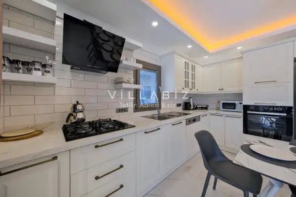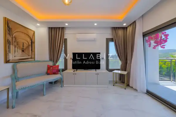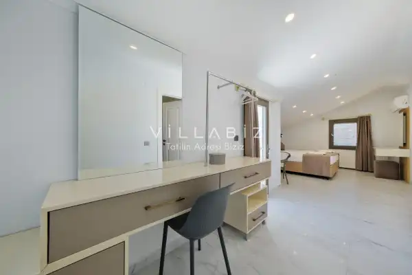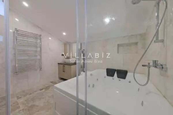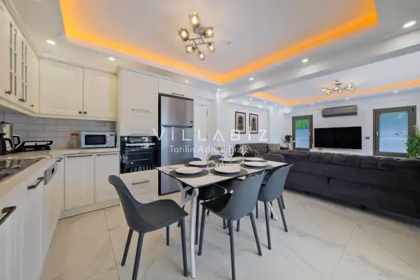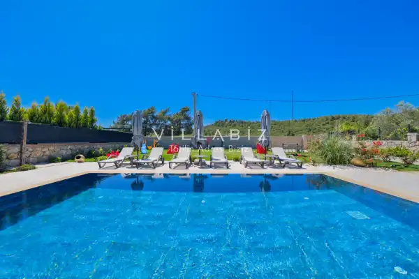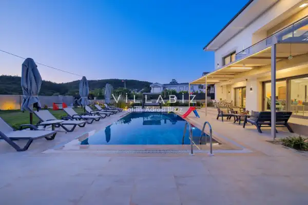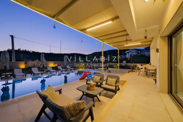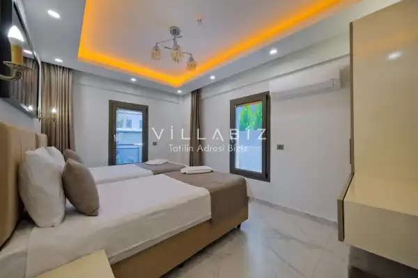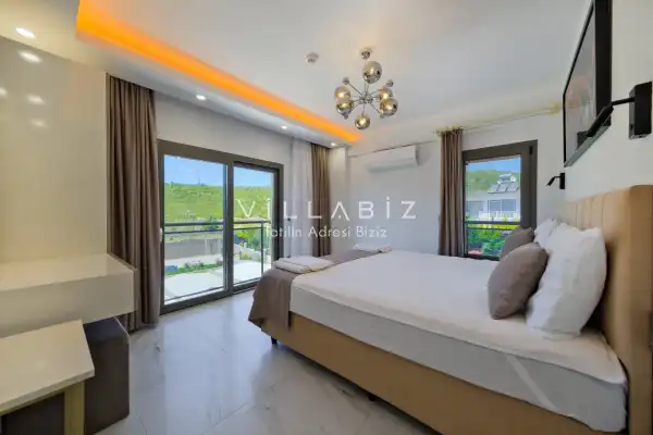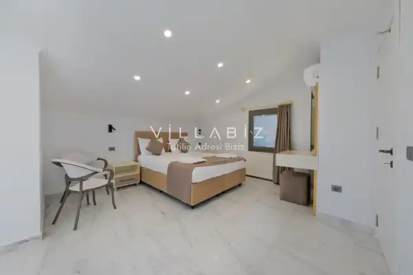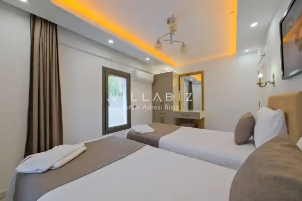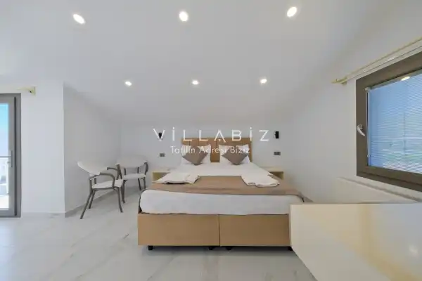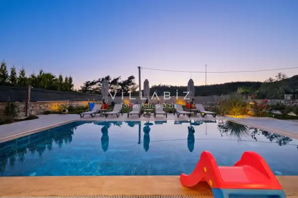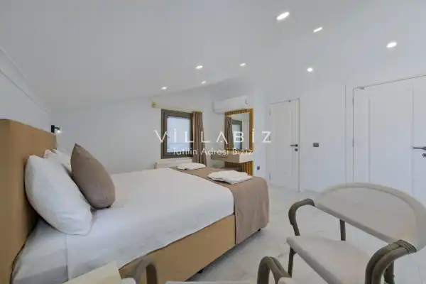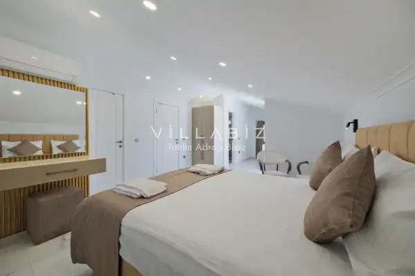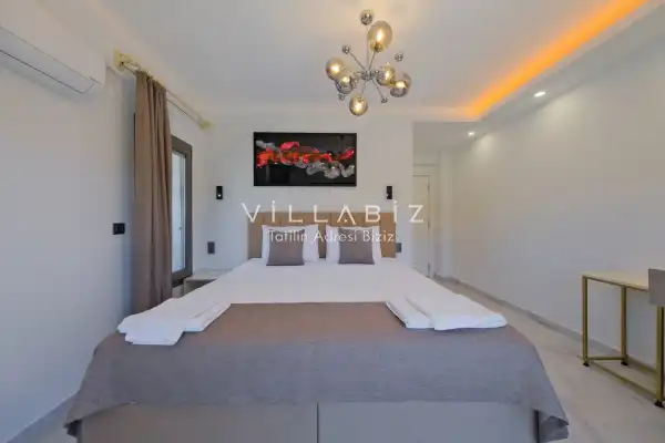 Toplam 4 yatak odasından oluşmuş, 8 kişi konaklama kapasitesine sahiptir. Geniş aileler ve kalabalık arkadaş grupları için oldukça idealdir. Oldukça şık ve modern bir şekilde döşenmiş olan villamızda misafirlerimiz için herşey düşünülmüştür. Havuz terasında bulunan şezlonglarda güneşlenebilir, bahçe masasında muhteşem yemekler yiyebilir, salıncakta sallanıp keyifli dakikalar geçirebilirsiniz.