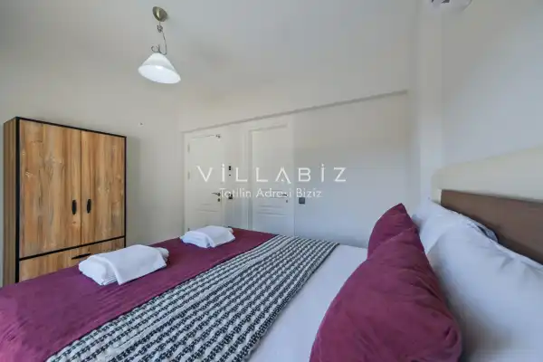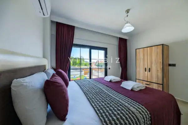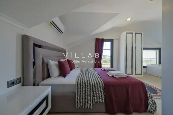 Toplam 3 yatak odasından oluşmuş, 6 kişi konaklama kapasitesine sahiptir. Geniş aileler ve kalabalık arkadaş grupları için oldukça idealdir. Oldukça şık ve modern bir şekilde döşenmiş olan villamızda misafirlerimiz için her şey düşünülmüştür. Havuz terasında bulunan şezlonglarda güneşlenebilir, bahçe masasında muhteşem yemekler yiyebilir, salıncakta sallanıp keyifli dakikalar geçirebilirsiniz.