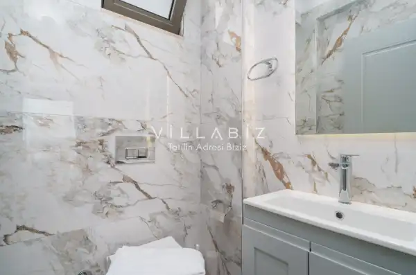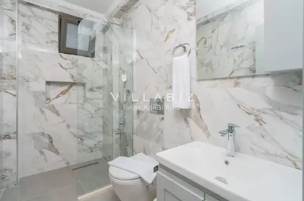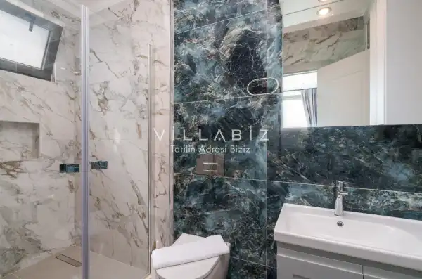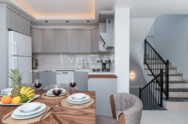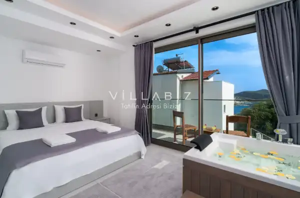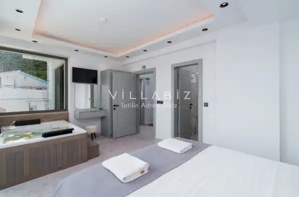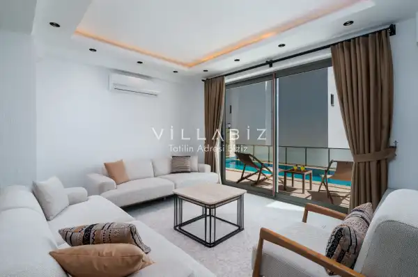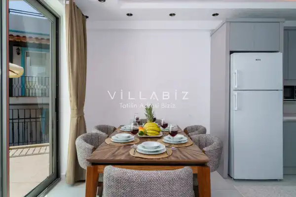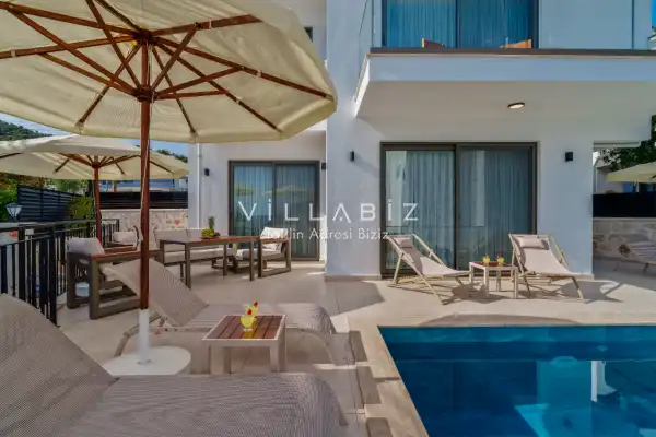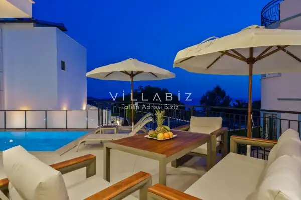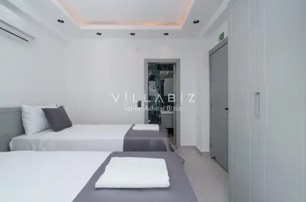 Toplam 3 yatak odasından oluşmuş, 6 kişi konaklama kapasitesine sahiptir. Geniş aileler ve kalabalık arkadaş grupları için oldukça idealdir. Oldukça şık ve modern bir şekilde döşenmiş olan villamızda misafirlerimiz için her şey düşünülmüştür. Havuz terasında bulunan şezlonglarda güneşlenebilir, bahçe masasında muhteşem yemekler yiyebilir, keyifli dakikalar geçirebilirsiniz.