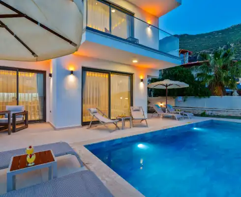 Villamız Antalya’nın en çok tercih edilen tatil bölgesi Kaş/Kalkan Kızıltaş mevkiinde yer almaktadır. Masmavi koylara ve muhteşem adalar manzarasına hakim bir noktadadır. Doğa içerisinde, bol oksijenli tertemiz havasıyla konaklayanlarına sağlıklı ve dingin bir tatilin kapılarını aralamaktadır