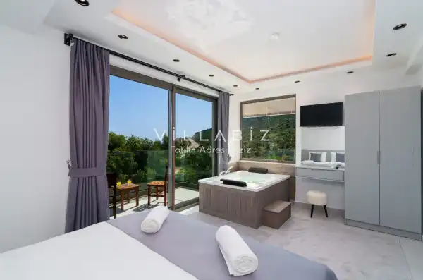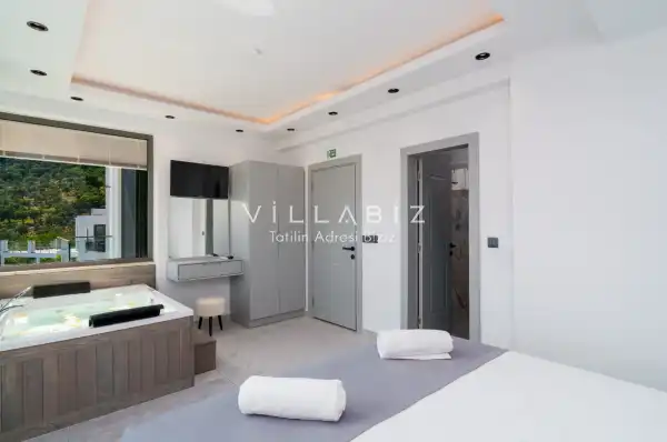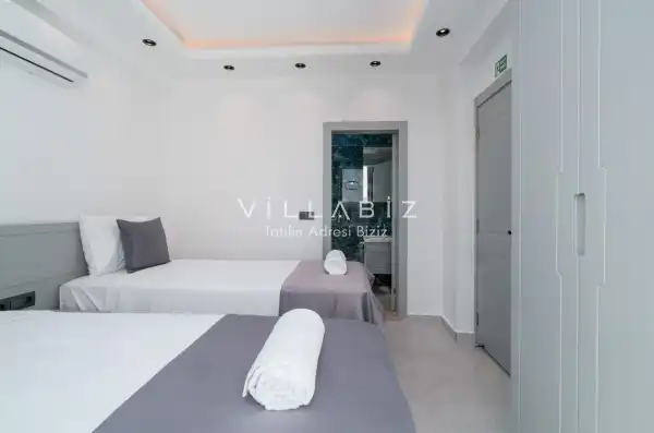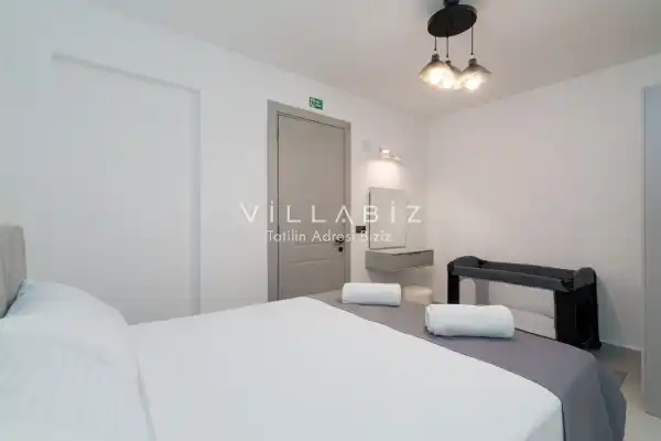 Toplam 3 yatak odasından oluşmuş, 6 kişi konaklama kapasitesine sahiptir. Geniş aileler ve kalabalık arkadaş grupları için oldukça idealdir. Oldukça şık ve modern bir şekilde döşenmiş olan villamızda misafirlerimiz için her şey düşünülmüştür. Havuz terasında bulunan şezlonglarda güneşlenebilir, bahçe masasında muhteşem yemekler yiyebilir, keyifli dakikalar geçirebilirsiniz.
