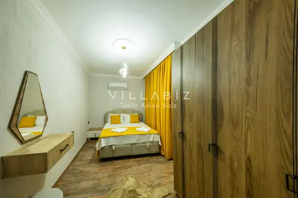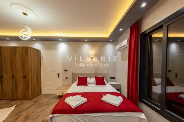 Toplam 4 yatak odasından oluşmuş, 7 kişi konaklama kapasitesine sahiptir. Geniş aileler ve arkadaş grupları ve için oldukça idealdir. Oldukça şık ve modern bir şekilde döşenmiş olan villamızda misafirlerimiz için her şey düşünülmüştür. Havuz terasında bulunan şezlonglarda güneşlenebilir, bahçe masasında muhteşem yemekler yiyebilir, salıncakta sallanıp keyifli dakikalar geçirebilirsiniz.