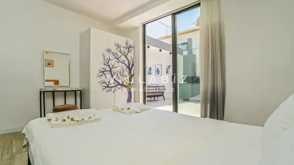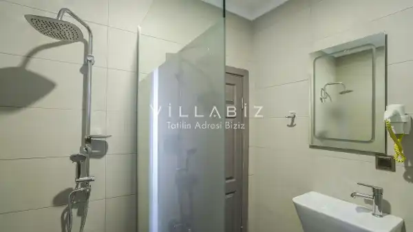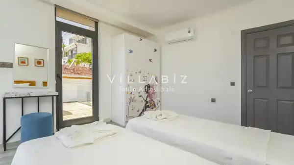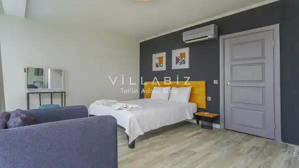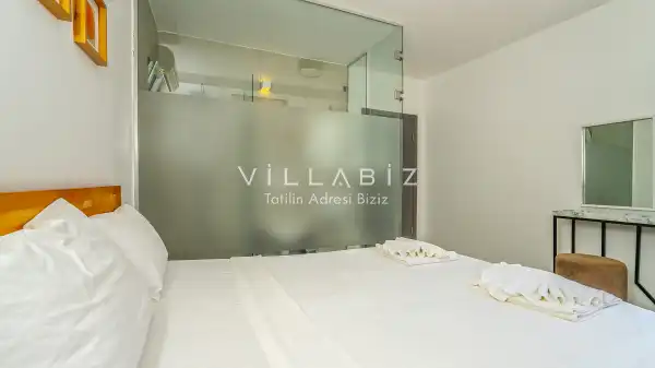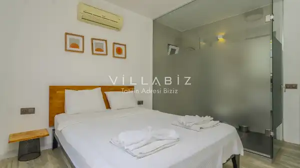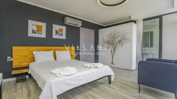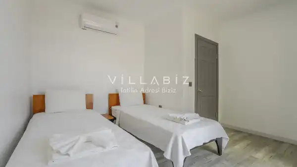 Toplam 4 yatak odasından oluşmuş, 8 kişi konaklama kapasitesine sahiptir. Geniş aileler ve kalabalık arkadaş grupları için oldukça idealdir. Oldukça şık ve modern bir şekilde döşenmiş olan villamızda misafirlerimiz için her şey düşünülmüştür. Havuz terasında bulunan şezlonglarda güneşlenebilir, bahçe masasında muhteşem yemekler yiyebilir, salıncakta sallanıp keyifli dakikalar geçirebilirsiniz.