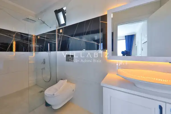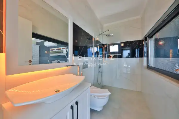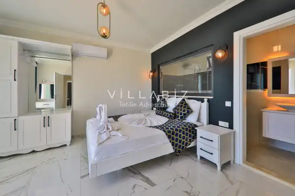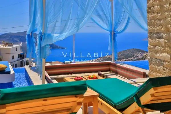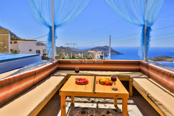Muhteşem bir deniz manzarasına sahip olan villamız 6 kişi konaklama kapasitesine sahiptir. Sevdiklerinizle birlikte günbatımına karşı içeceklerinizi yudumlayıp manzaranın tadını çıkarabilirsiniz. Aynı zamanda merkeze ve plaja yakın bir konumda yer alan villamız siz değerli misafirlerimize keyifli bir taitl imkanı sunmaktadır.